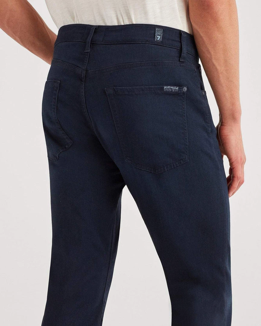 A slimmer straight fit in our signature super-stretch denim with a saturated deep indigo wash, tonal hardware, & tonal labels.