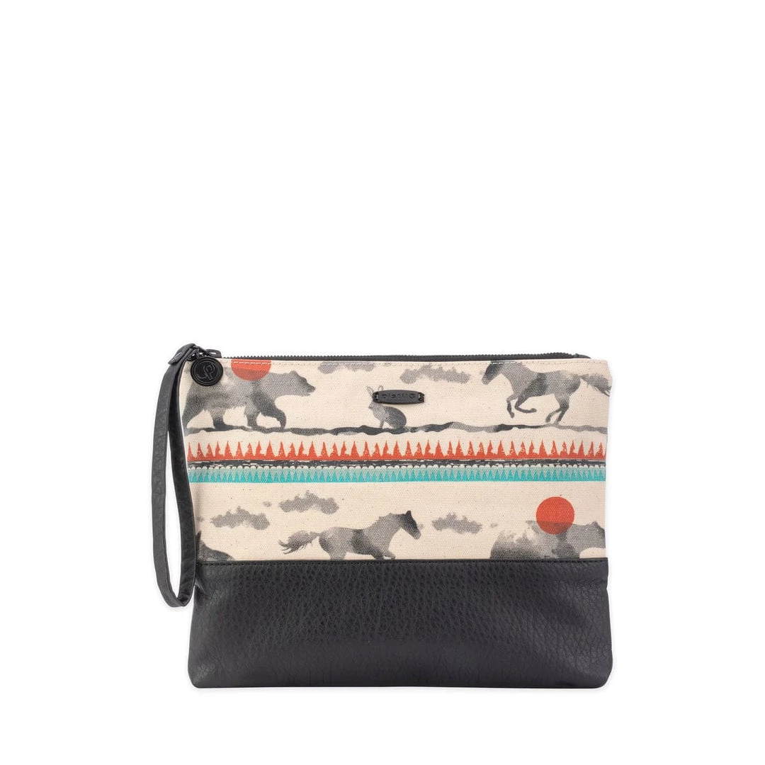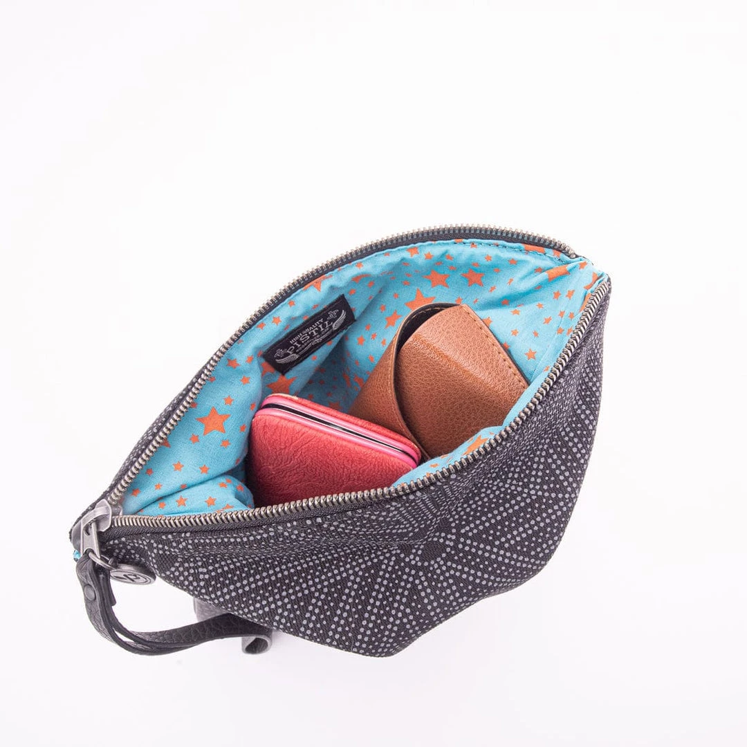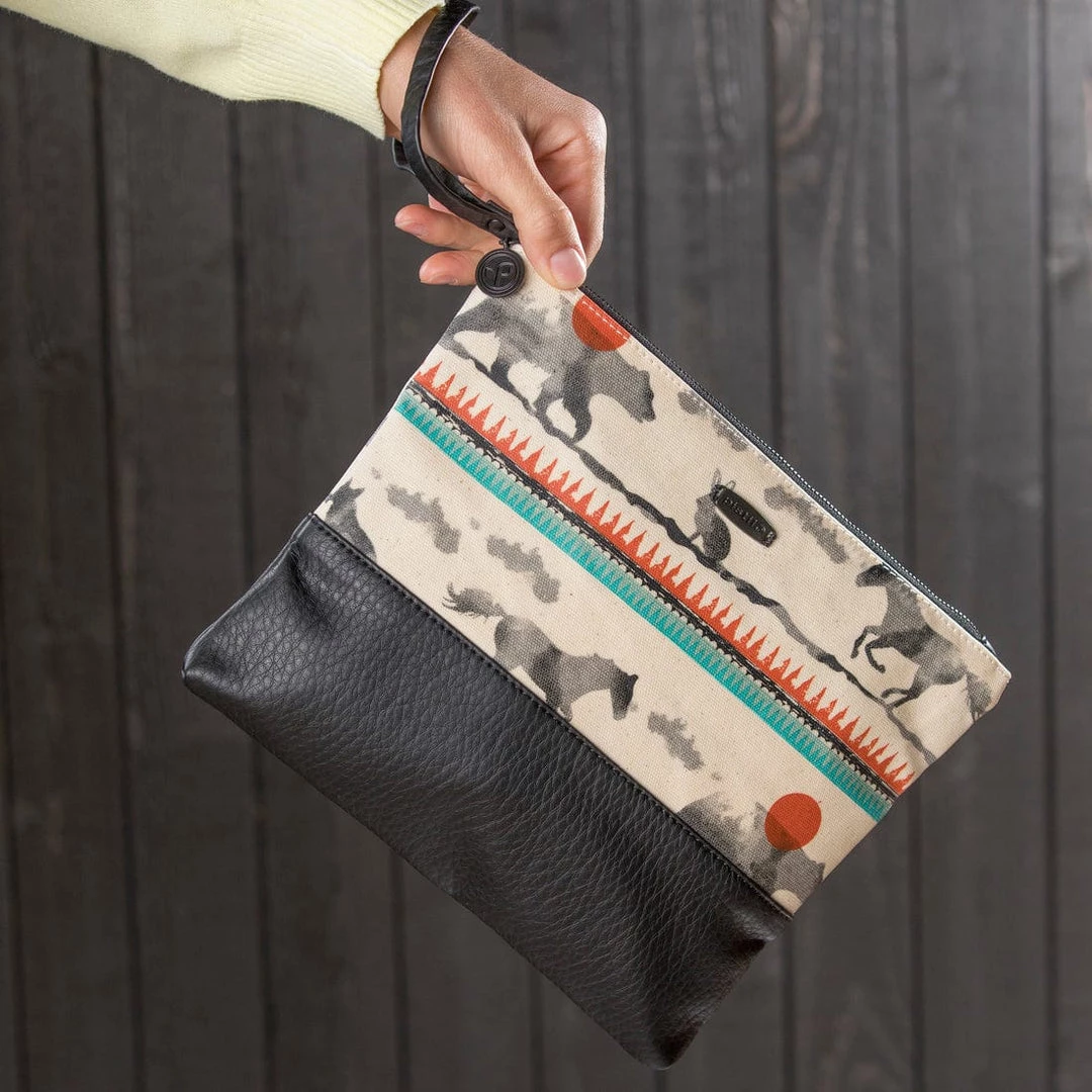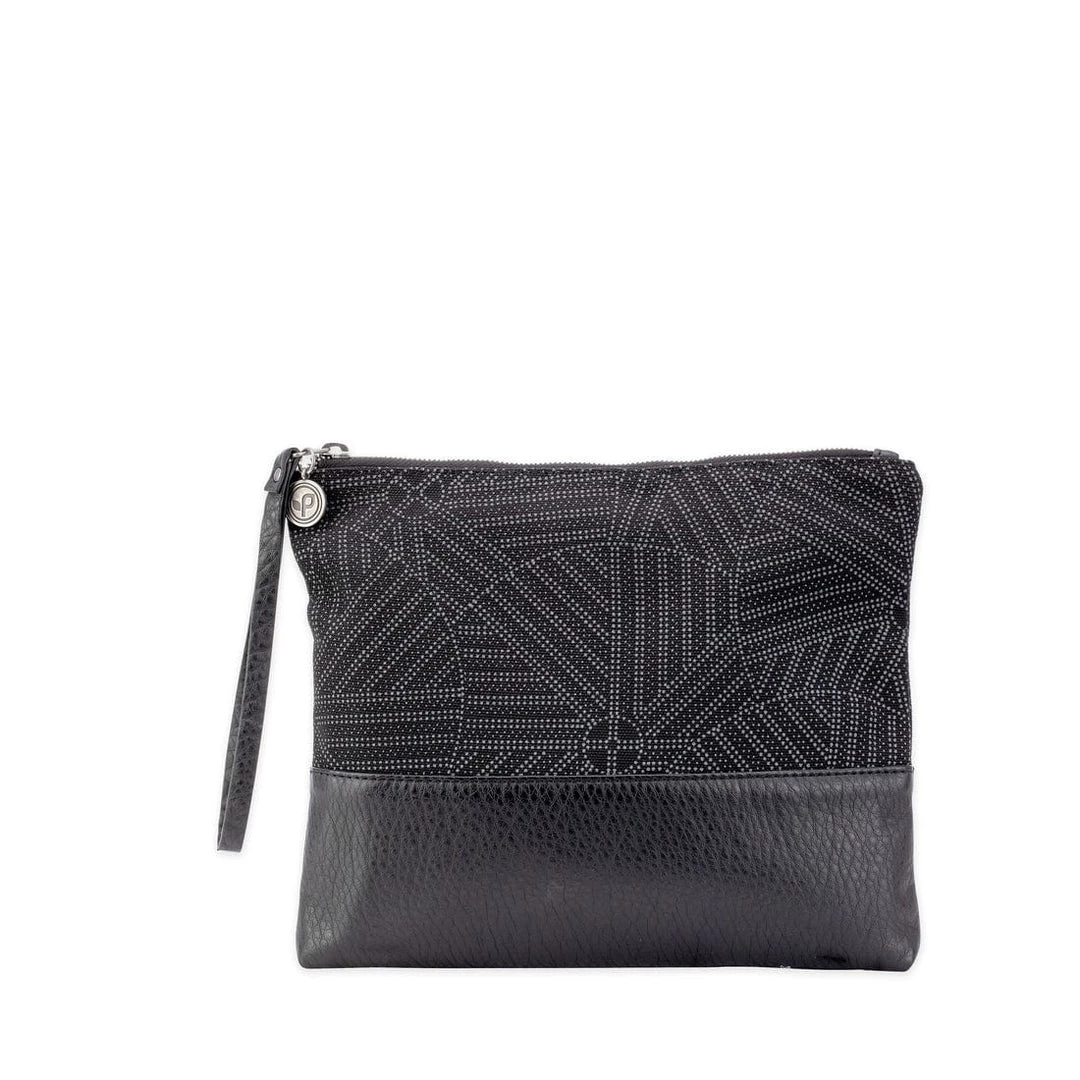 The Have We Met? lives a double life. The women’s bag works as a roomy pouch to fill with essentials and toss in your tote, and it can stand alone as a sleek fold-over clutch to slip under your arm. Faux leather trim elevates the look.