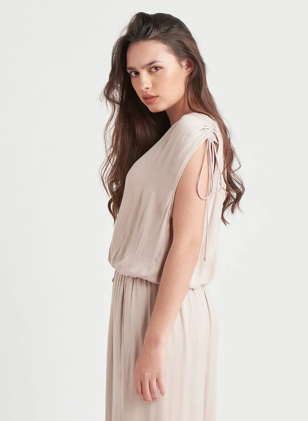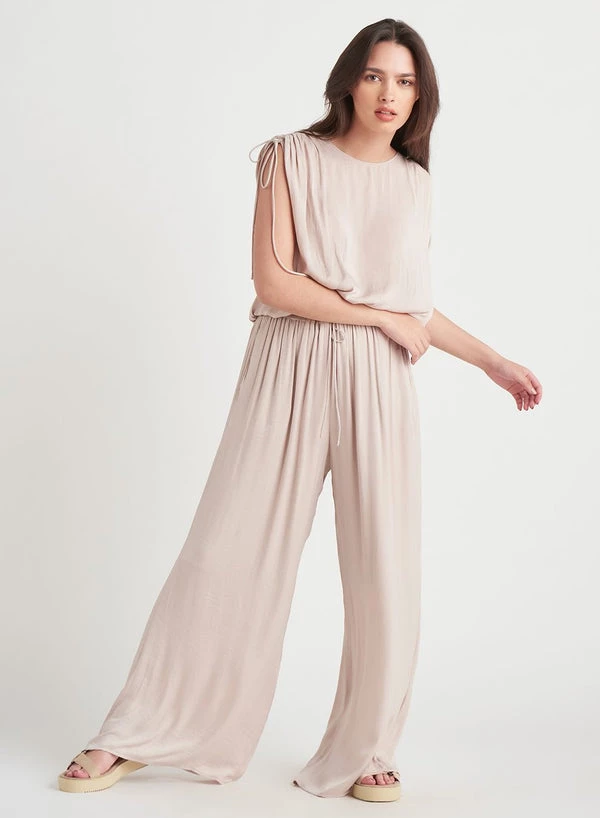 Now this is an elevated tank top! Featuring a unique drawstring wide strap, keyhole back, and elastic hem! Chic and effortless, wear this with jeans or pair it with our matching wide leg satin pant for a fabulous 2-piece look!