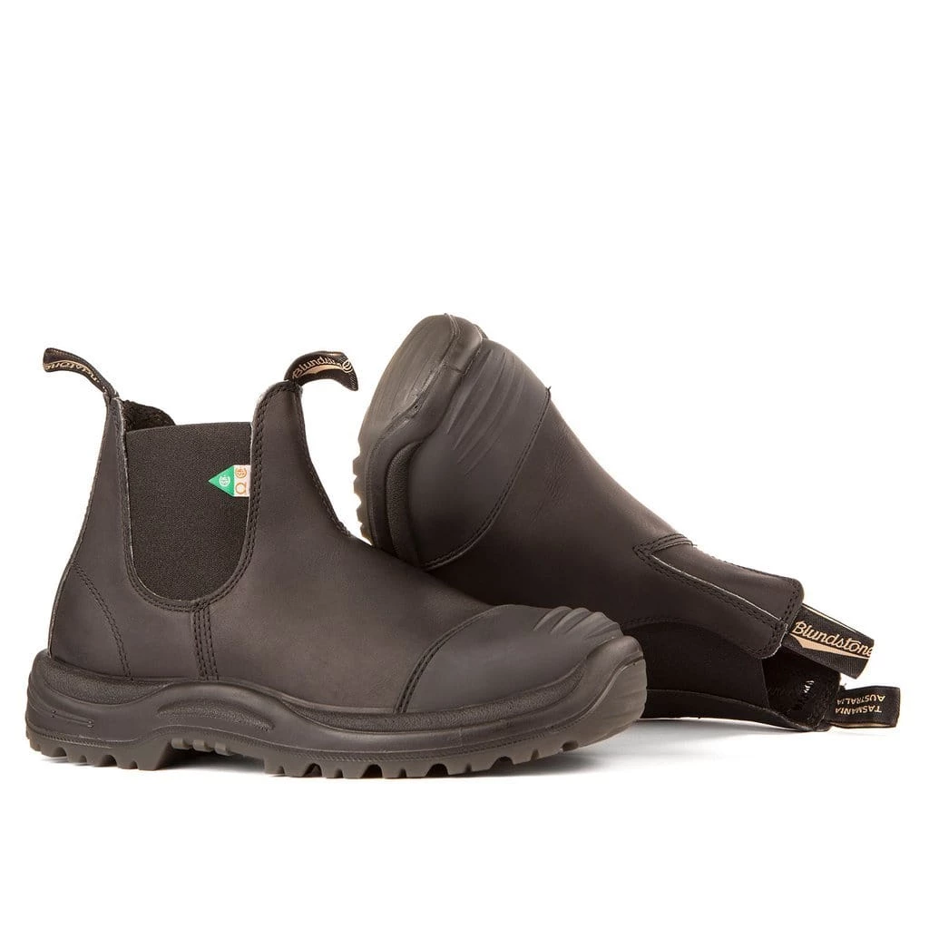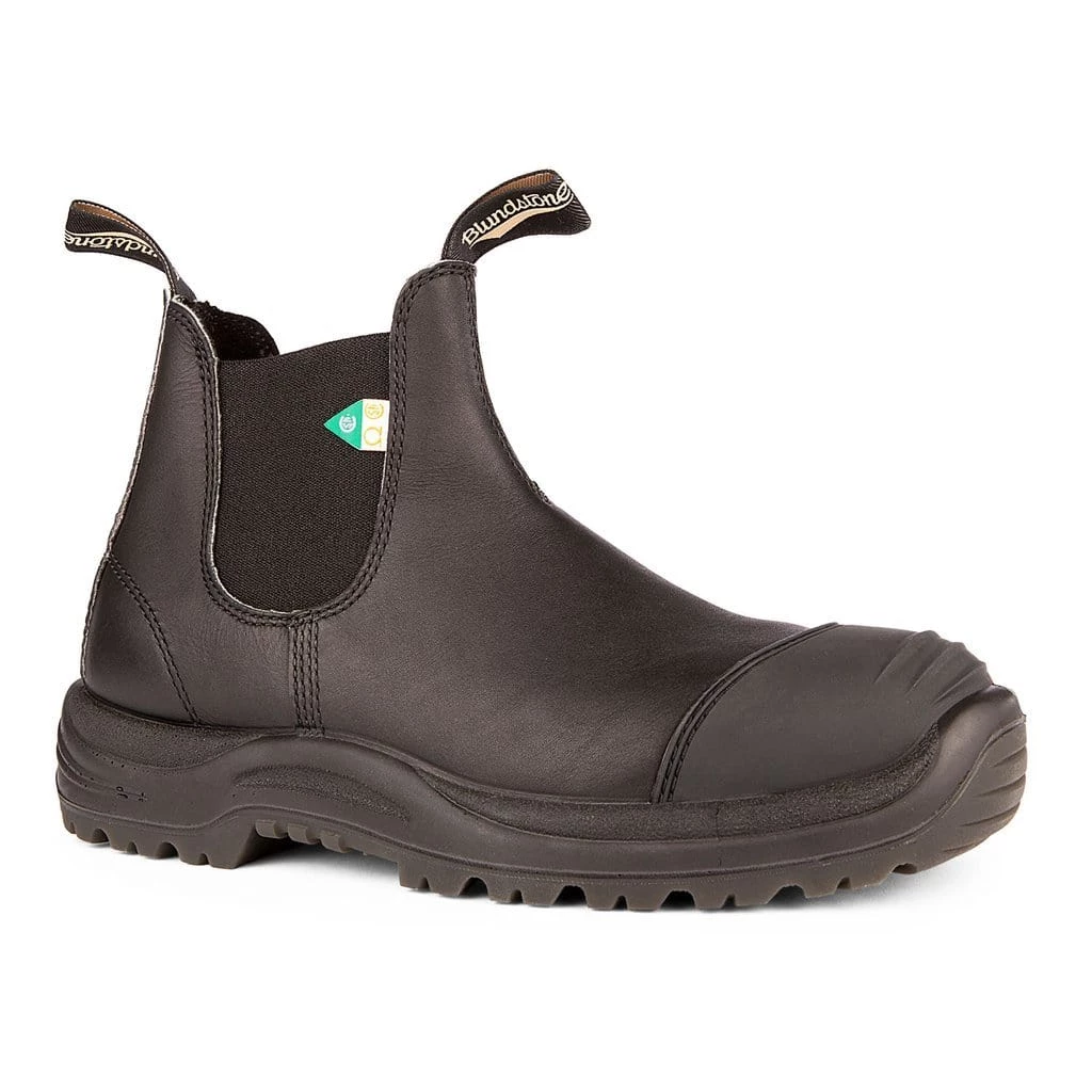 A steel toe protects your feet and now a rubber toe cap protects your boots. All-day comfort, dry feet, no laces in a work boot so safe it even protects itself. Multiple safety features that meet CSA requirements keep feet safe. Over-the-ankle protection. Dry, lightweight all-day comfort even on concrete.