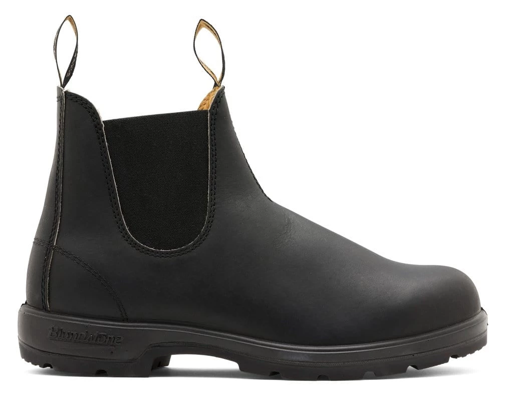 The Blundstone 558 Chelsea in Black. Dual layers of leather provide comfort and added wear. Soft leather cradles feet inside. Tough, oiled leather outside has excellent long-wear characteristics. Unisex sizing.Â