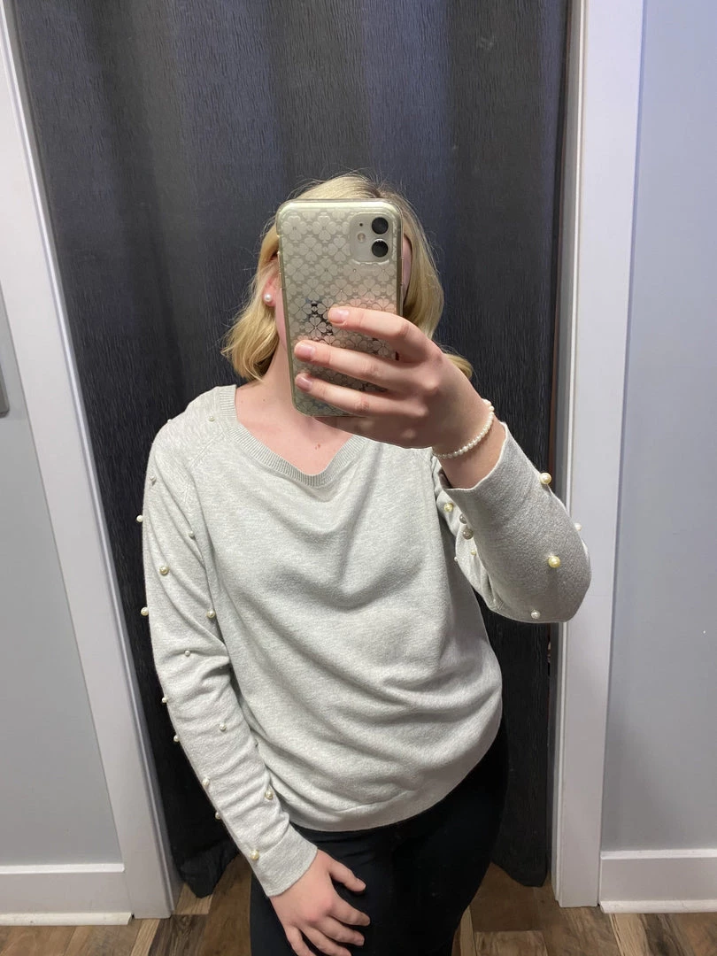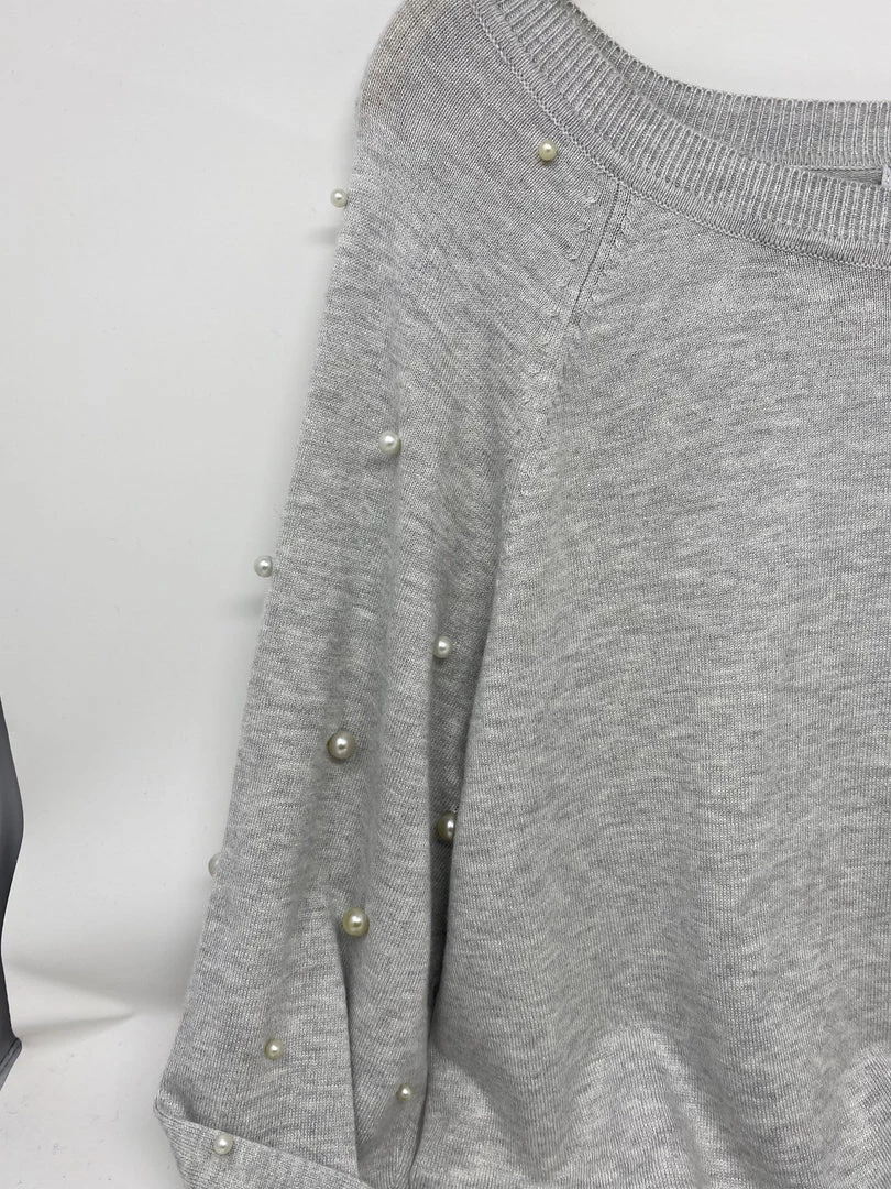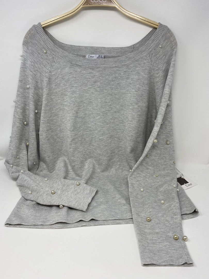 Long Sleeve Boat neck Pearl Embellishment Sweater Top M Women * Last Chance