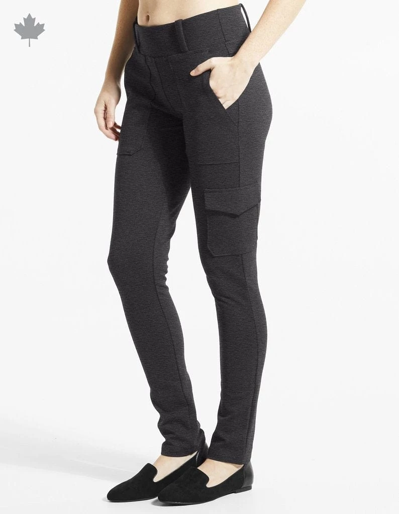 – Fitted leg pants with elastic at waistband