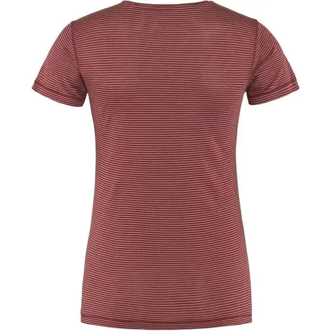 Short-sleeved t-shirt with an attractive fit and V-neck. Just as comfortable when trekking as when travelling in warm climates. Made from pliant functional material with tencel and organic cotton that wicks away moisture and gives a comfortable feel against the skin. Attractive pattern with thin stripes in similar nuances. Flat lock seams prevent chafing.