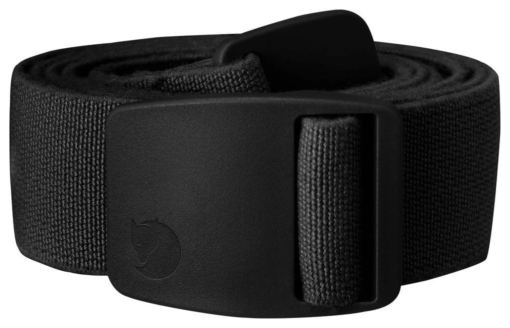Comfortable elastic belt. Easily adjusted plastic buckle with a flat profile that sits well under a backpack’s hip-belt.