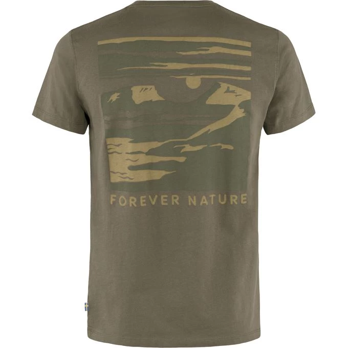 Comfortable short-sleeved t-shirt in organic cotton. Print of Lake Torneträsk on the back – the lake by the northern end of the Kungsleden trail in northern Sweden. There is also a small logo printed on the chest.