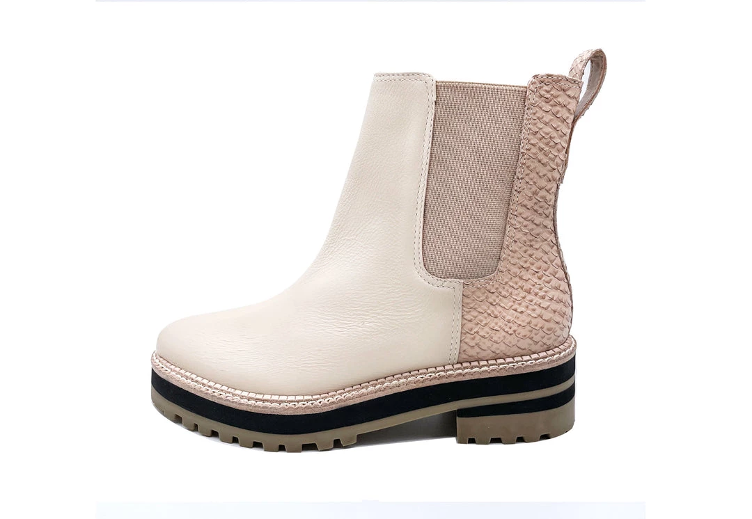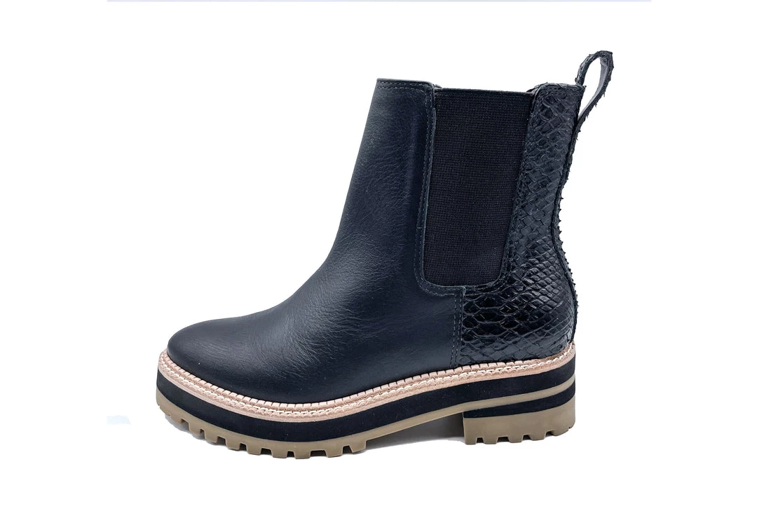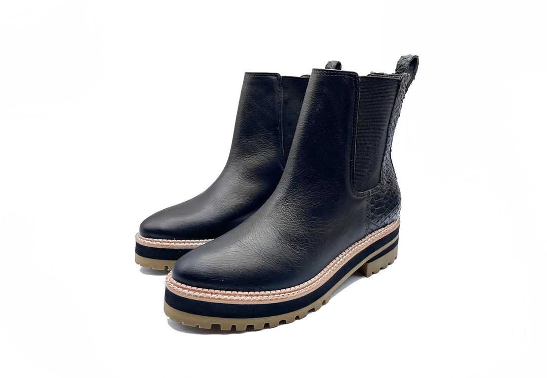 A stylish update on classic chelsea boots from KAANAS, featuring a tonal snake-embossed panel in back and a three-tone midsole.