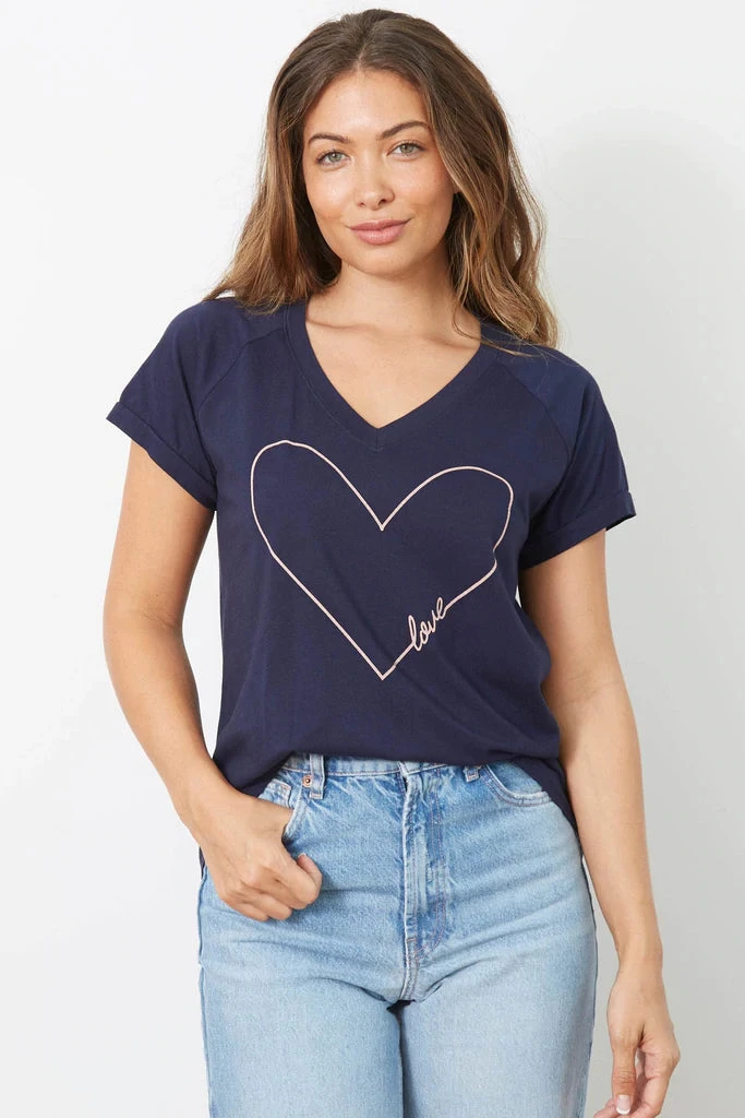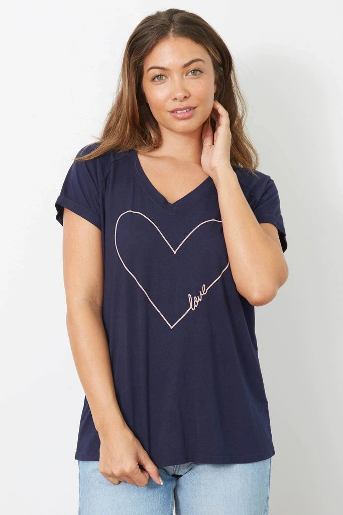 Crafted in everyone’s favorite cloud fabric, dyed in the perfect navy blue shade and featuring our LOVE IN HEART GRAPHIC, you’re going to LOVE this top!