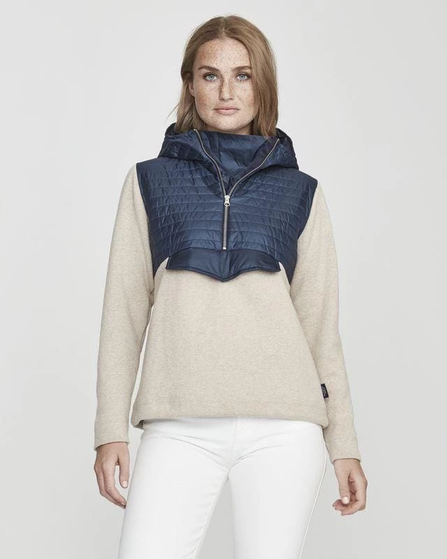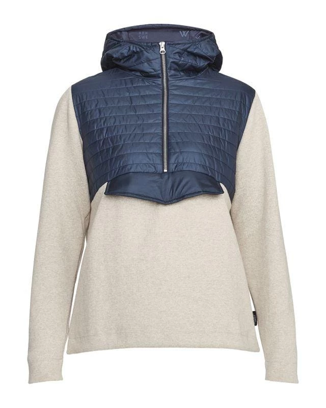 New!Flat knitted anorak wtih hood in cotton. Water repellent quilted details. A large pocket at the front and drawstring at hemline.