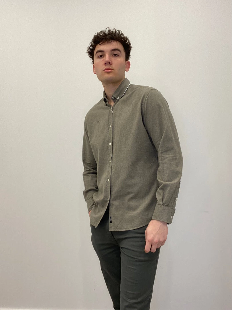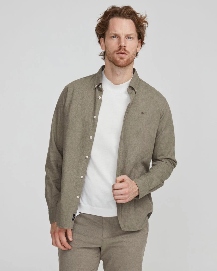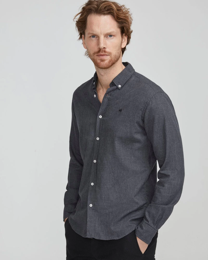 Our classic shirt in soft brushed cotton quality. Regular fit and button-down collar. Contrasting buttons and embroidery at the chest.Â