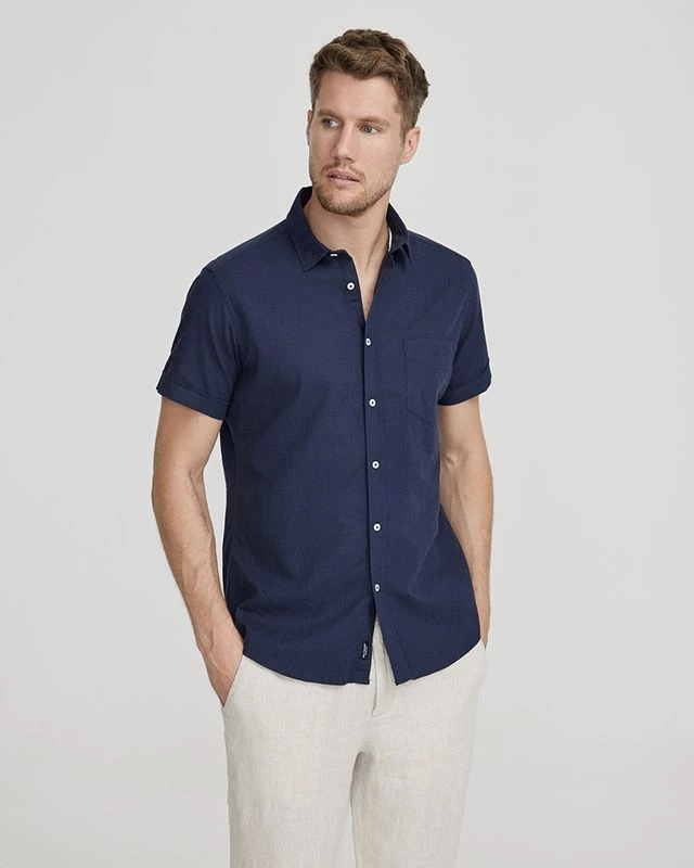 A classic short sleeved shirt. Self rolled edges at the sleeves and chest pocket. Slitses in the sides.