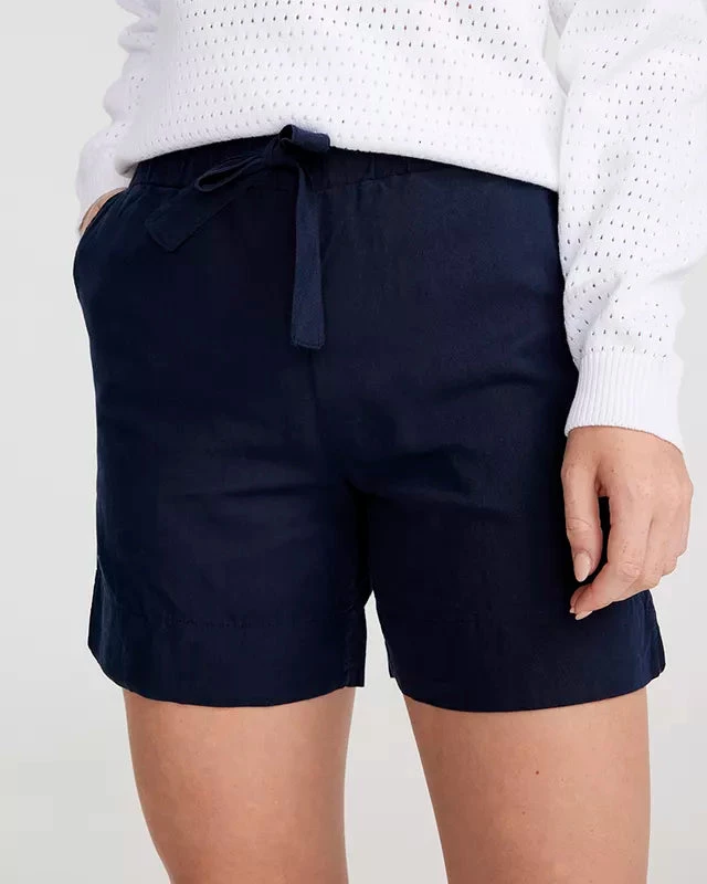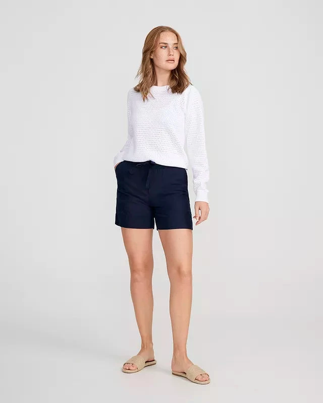 Summery shorts in linen blend with tie straps at the front. These shorts has a elastic waist and pockets at the sides.