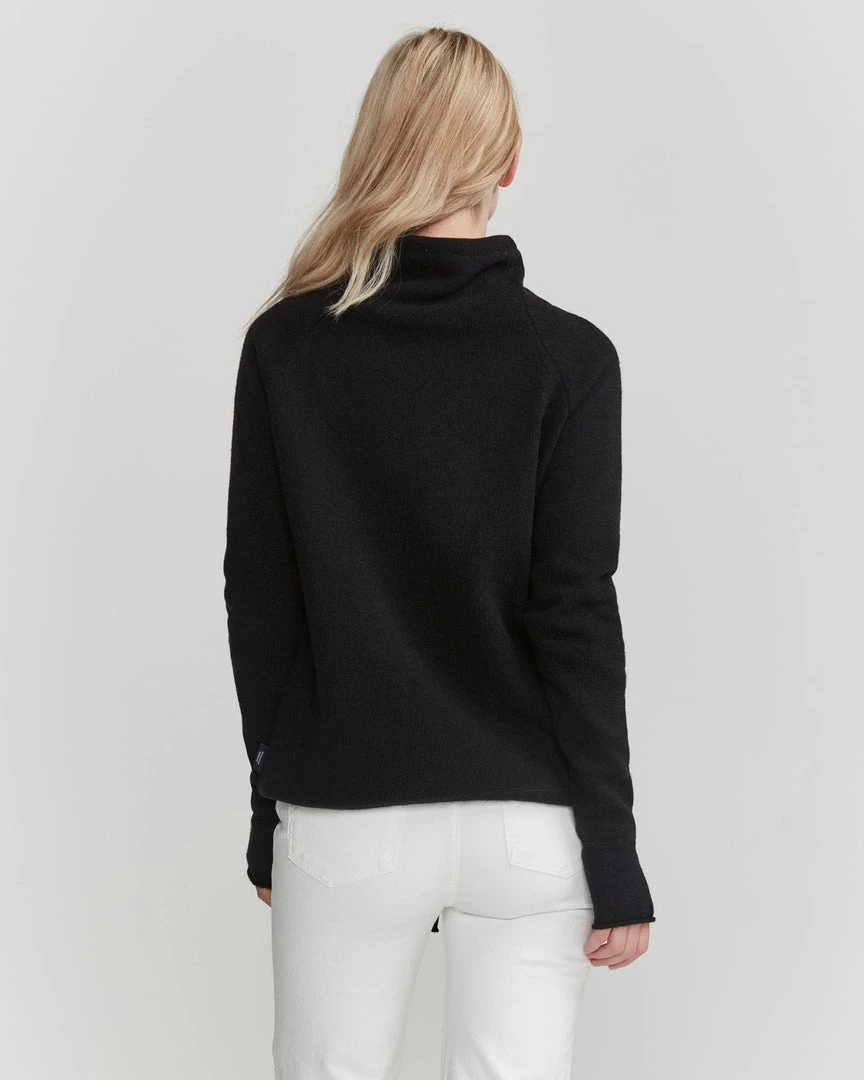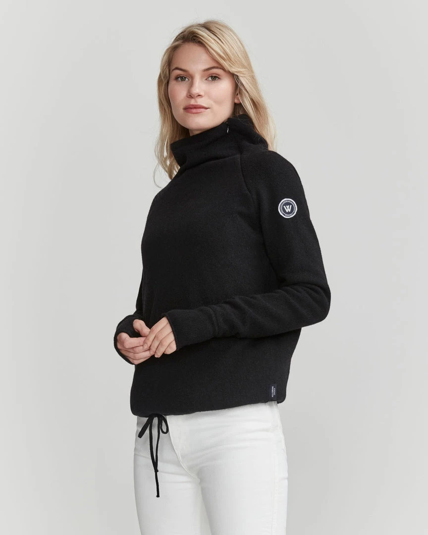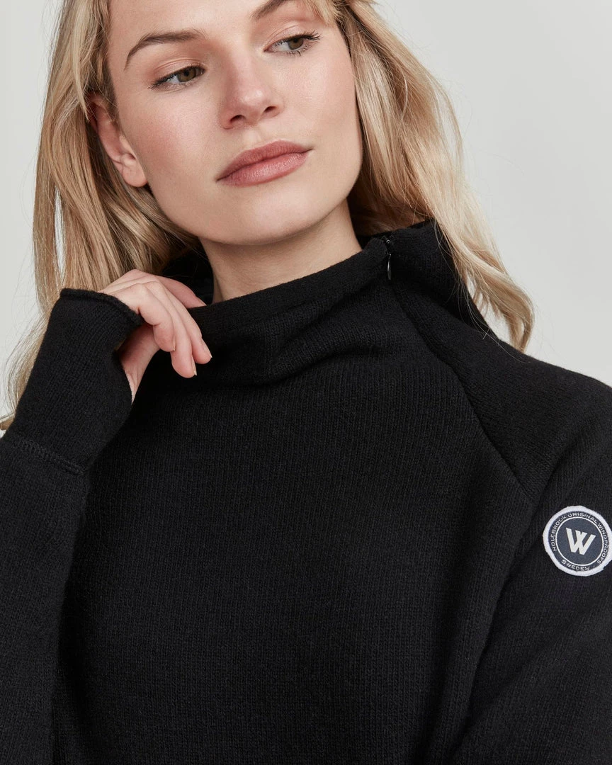 This is our bestselling classic! Knitted in wool blend sweater with a windproof lining. Funnel collar with a short zip. Casing in hem and ribbed cuffs with thumbholes to keep you warm. Â Elastic windproof lining (97% polyester, 3% elastane).