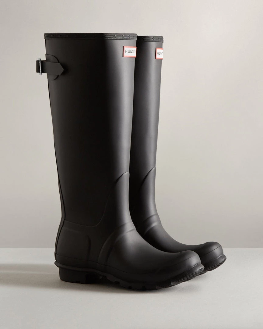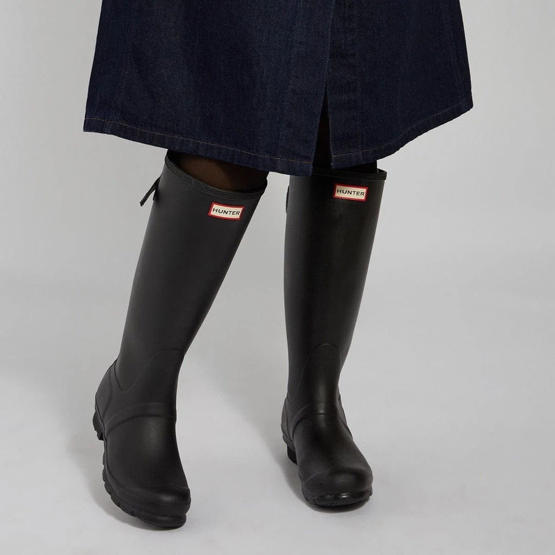 Designed for a flexible fit, the Original Tall Adjustable Boot mirrors the iconic Original Tall with the addition of an expandable gusset at the back. Perfect for a wider calf, these matte boots in classic black offer ease of movement and adjust from the traditional tailored Hunter fit to a more relaxed shape when the gusset is fully extended. Handcrafted from natural rubber, the Original Adjustable boot is fully waterproof with a comfortable polyester lining and the signature Hunter Original tread.