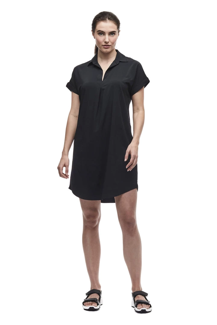 The FRIVOL dress is made of light woven fabric that offers comfort, lightness, softness and stretchability. The fabric dries quickly and has moisture wicking properties and has a UPF rating 30+. These features make this dress versatile, great for travel and various outdoor activities.
