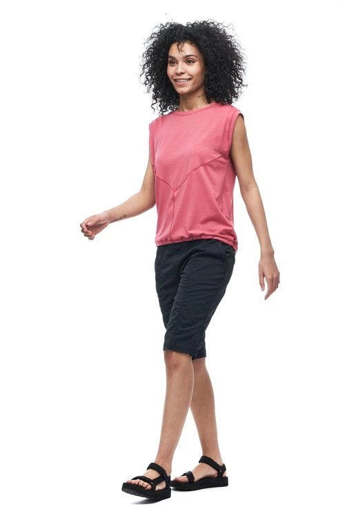 The GOMA sleeveless top is made from fabric containing Lyocell, a fibre made of wood cellulosic obtained from sustainable forests. Partially eco-friendly, drirelease® Lyocell ensures long-term fabric performance and maintains its softness after wash. It has moisture-wicking and fast drying properties, which minimizes odors and maximizes comfort and has a UPF rating 30+. These features make this top versatile, great for travel and various outdoor activities.