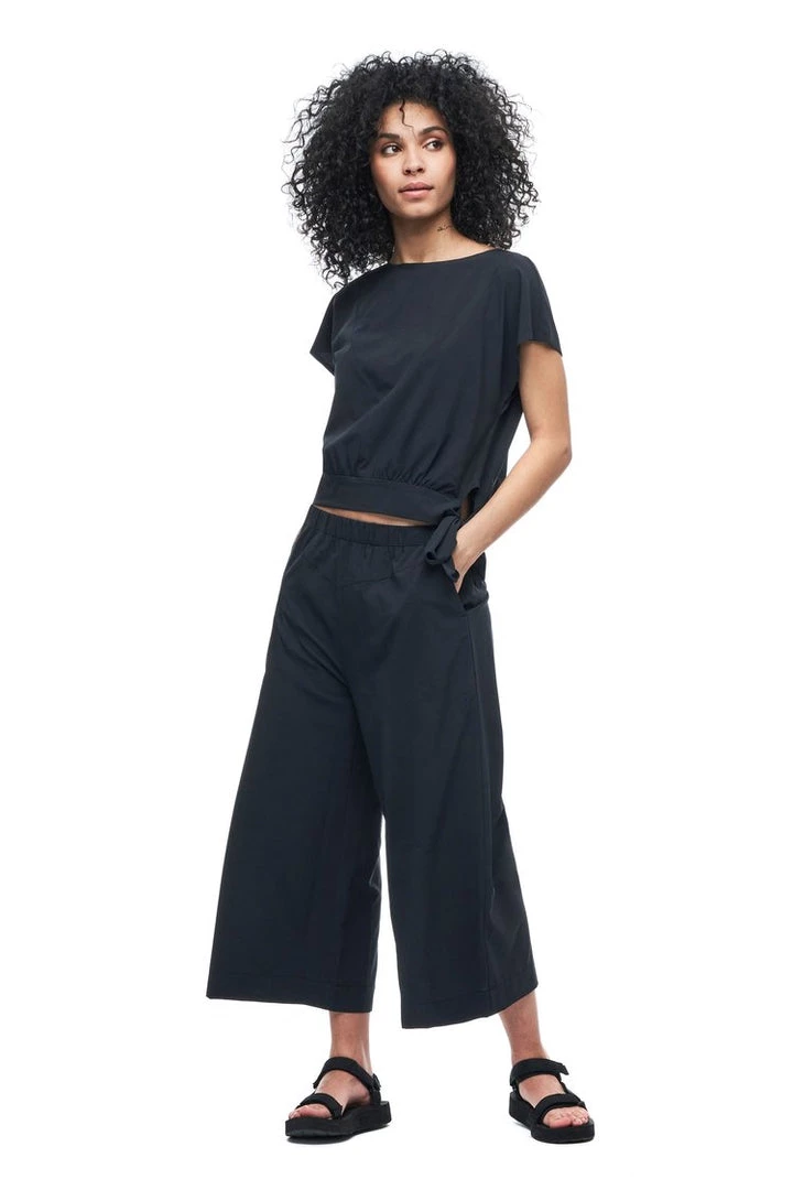 The EPESI regular waist wide leg pants is made of light woven fabric that offers comfort, lightness, softness and stretchability. The EPESI pants have an elastic waistband and back pocket with zipper closure, ideal for an active journey. The fabric dries quickly, has moisture wicking properties and has a UPF rating 30+. These features make these pants versatile, great for travel and various outdoor activities.