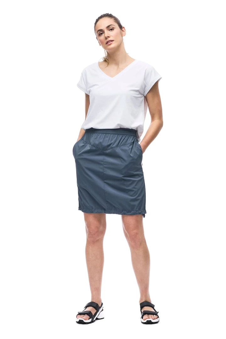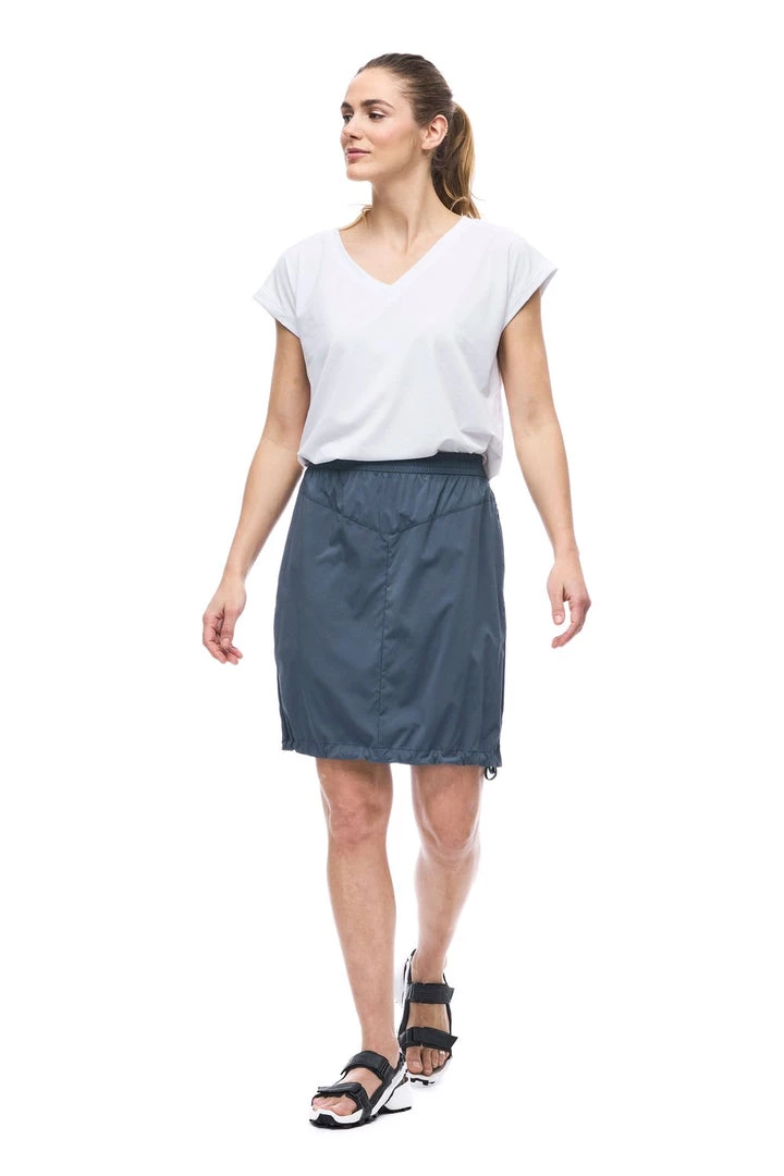 The ETEK skirt is made of woven stretch fabric that is light, strong, and 2-way stretch. The weave offers ease of movement, dries quickly, wicks moisture and has a UPF rating 50+. These features make this skirt versatile, great for travel and various outdoor activities.