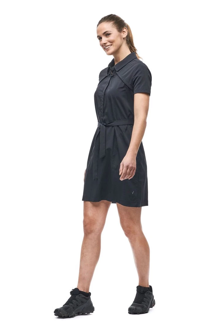 The KILIM II dress is made of woven stretch fabric that is light, strong, and 2-way stretch. The weave offers ease of movement, dries quickly, wicks moisture and has a UPF rating 50+. The KILIM ll dress comes with a removable belt at the waist and has hand pockets with zipper closure for a useful piece. These features make this dress versatile, great for travel and various outdoor activities.