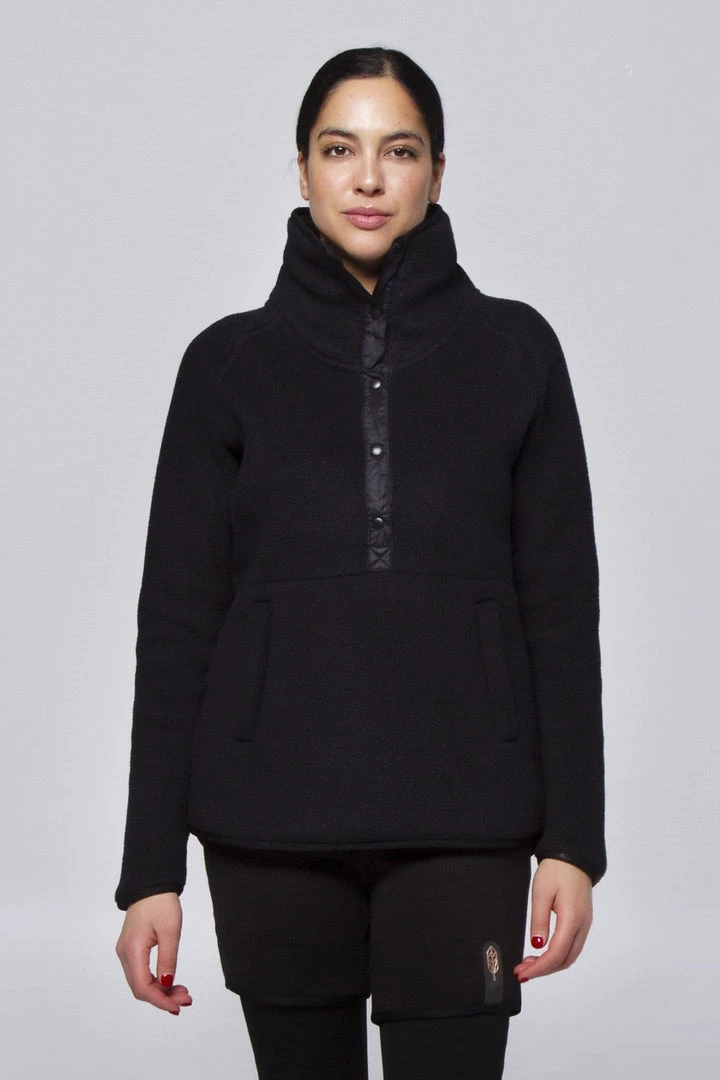 The PECORA pullover sweater is made from POLARTEC® fleeced sherpa fabric. With respect to warmth, comfort and breathability, this fabric is both efficient and versatile for cold climates.