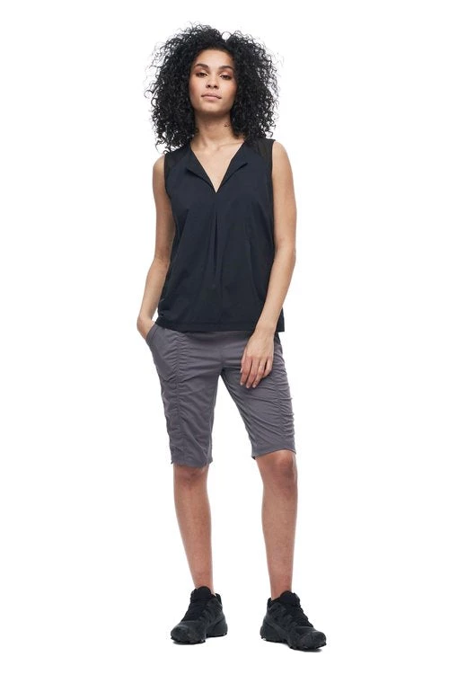 The STEEK II shirt is made of woven stretch fabric that is light, strong, and 2-way stretch. The weave offers ease of movement, dries quickly, wicks moisture and has a UPF rating 50+. These features make this shirt versatile, great for travel and various outdoor activities.