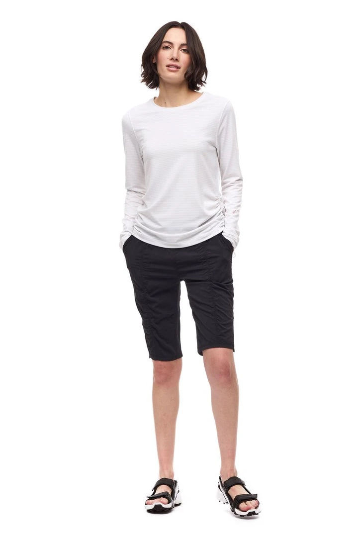 The VIAJAR II bermuda short is made of woven stretch fabric that is light, strong, and 2-way stretch. The weave offers ease of movement, dries quickly, wicks moisture and has a UPF rating 50+. These features make this short versatile, great for travel and various outdoor activities.