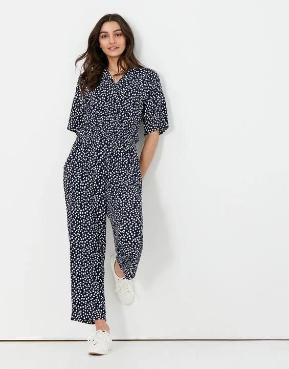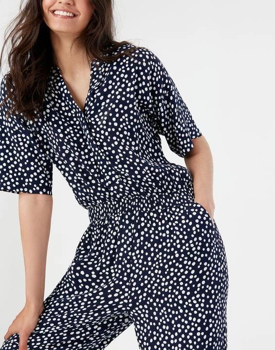 Last-minute invitation? This all-in-one, effortlessly stylish jumpsuit is about to become your wardrobe’s best friend, perfect for dressing up in no time – just throw on a few statement accessories and you’re ready to go! Designed with loose-fitting grown on sleeves cut at the elbow, a flattering smocked waist and an open neck, you can expect compliment after compliment in this one.