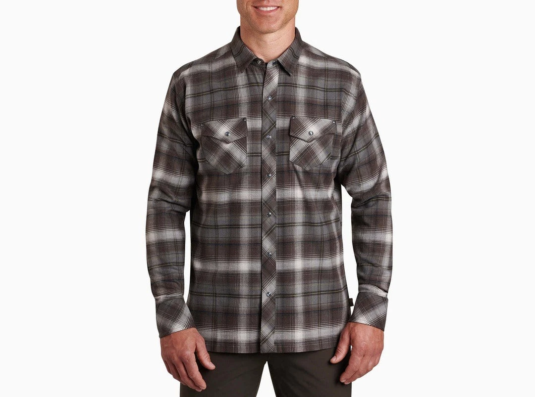The KÜHL LOWDOWN™ Men’s Long Sleeve Shirt’s luxuriously soft, lightweight, and breathable fabric will keep you fresh and comfortable throughout the day. This durable shirt incorporates a touch of stretch for enhanced freedom of motion. Two western styled chest pockets with marble snap enclosures and an inside security pocket provide safe storage.