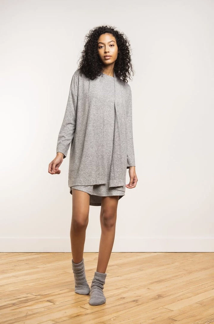 Looking for the perfect everyday essential? Wear this piece as a lightweight robe or cardigan, with or without the matching belt. The marled knit has an easy drape for all seasons.