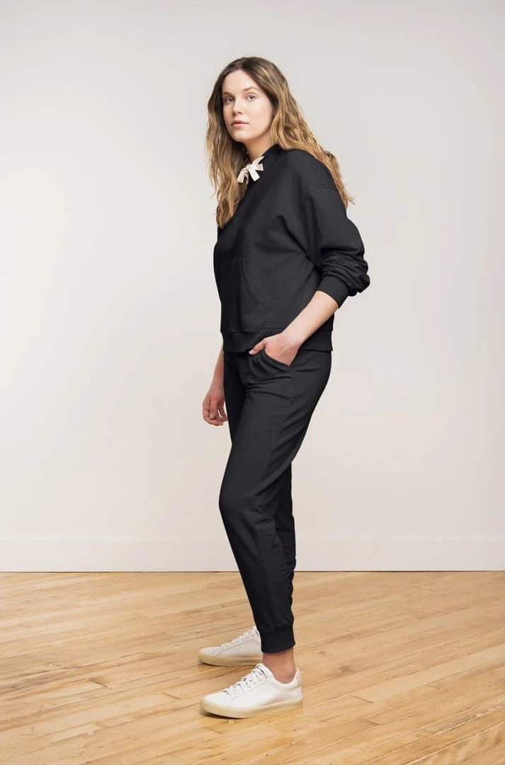 These joggers feature a body-skimming silhouette that’s flattering from its patch pockets down to its ribbed cuffs. Our cotton-spandex French terry fabric is light yet cozy and comfortable.