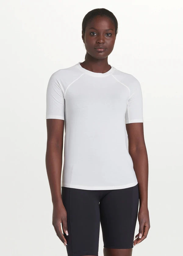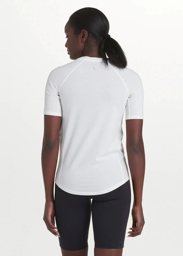 An athletic t-shirt that’s ready for sweat. The Performance Wool tee features inserts under the arms to prevent it from riding up no matter how intense the workout. It’s also made from recycled post-consumer polyester, keeping the environment in mind.