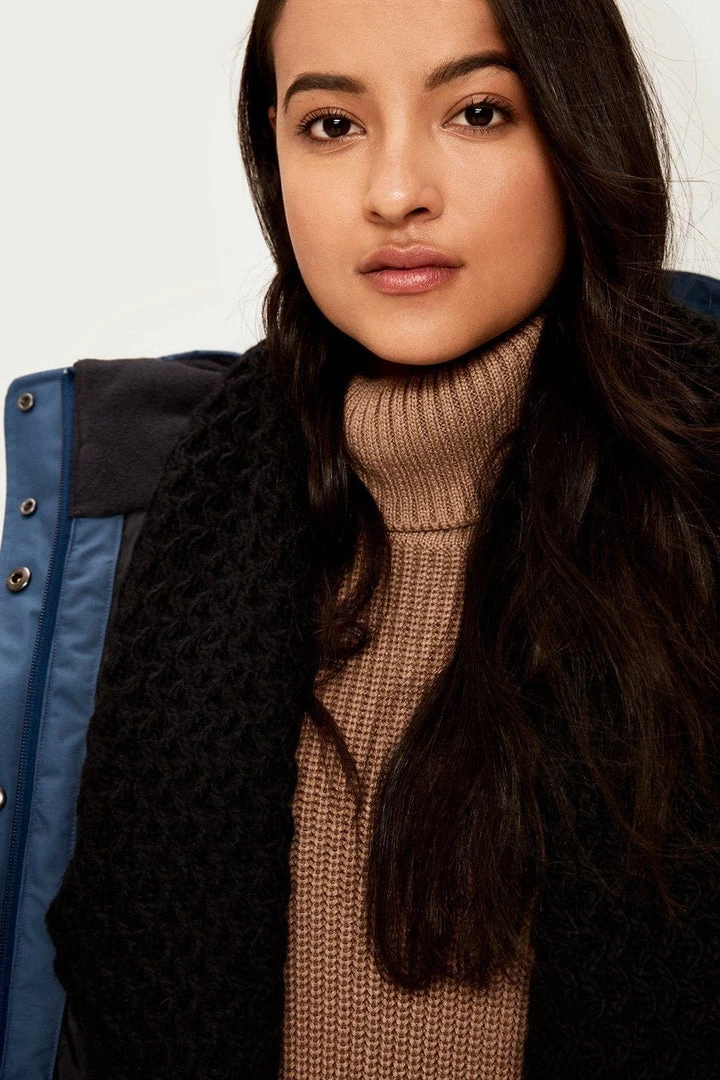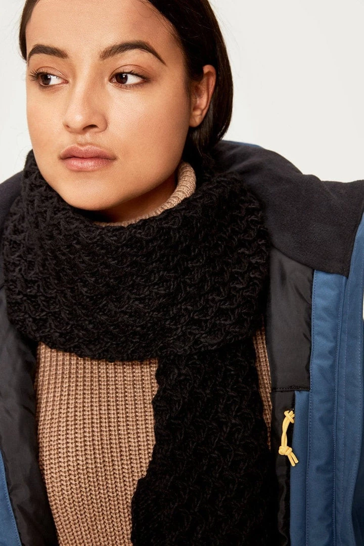 - This popcorn-stitch Lolë scarf adds a touch of class and warmth to your daily wear or your favorite cold-weather jacket.