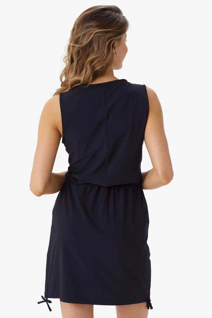 This casual dress is designed with an elastic waist, side pockets, and adjustable side seams that that not only shorten or lengthen the dress, but also create an on-trend ruched detail and bows at the sides.