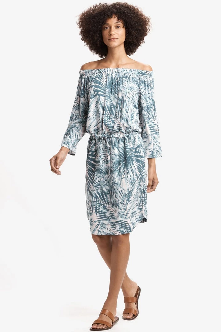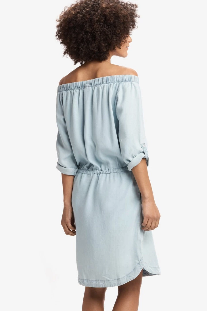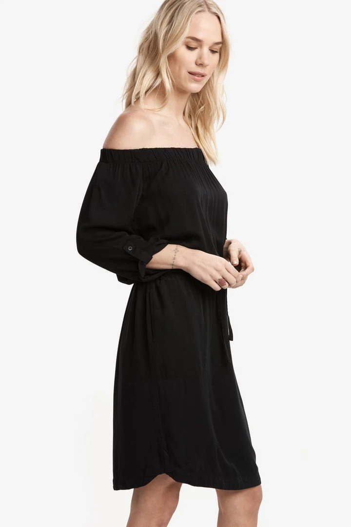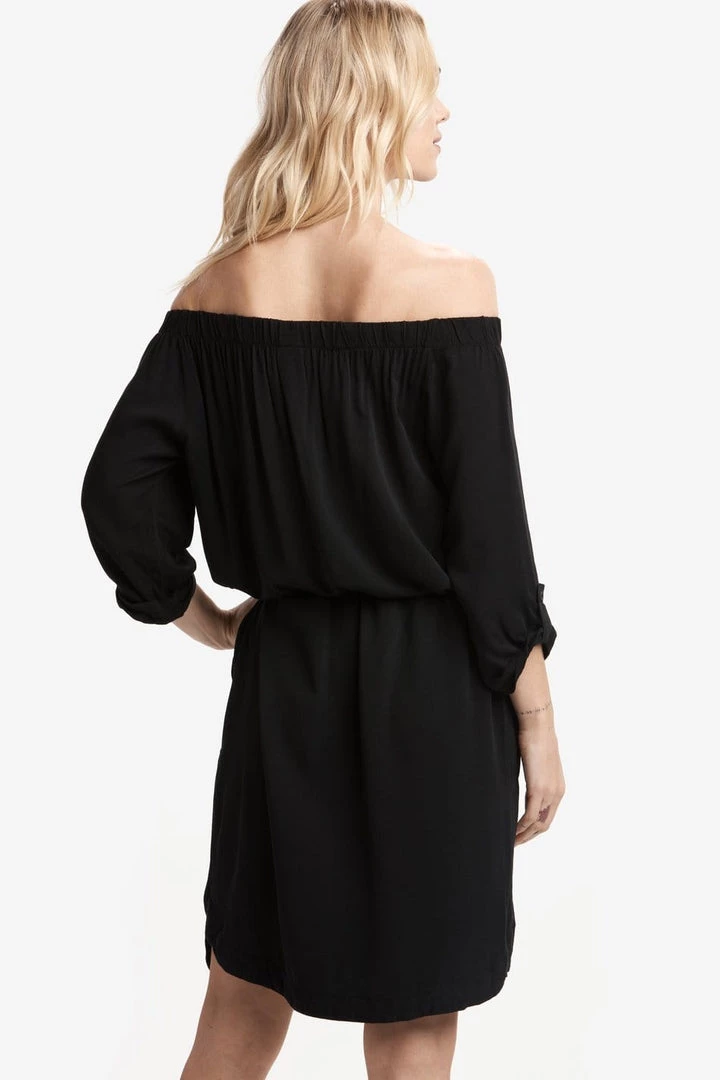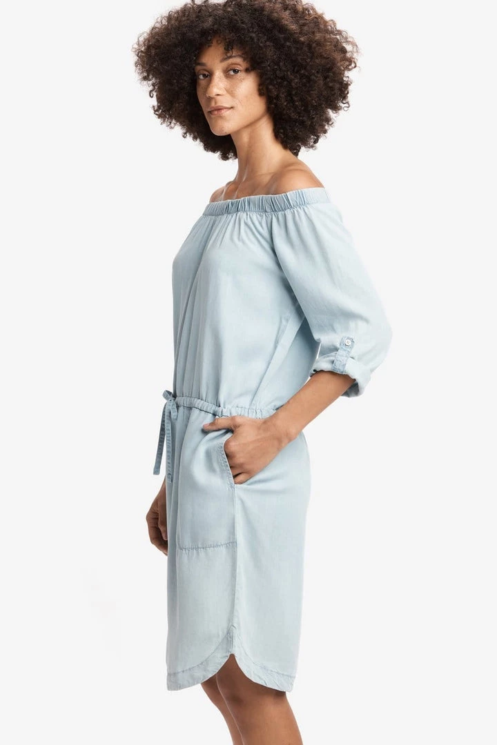 For a casual and feminine summer look, add this dress with fold-up sleeves to your wardrobe.