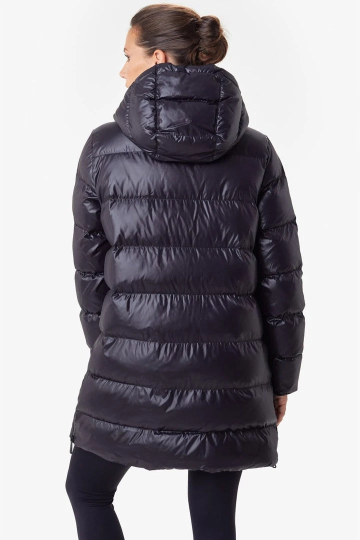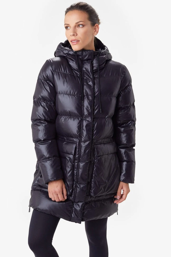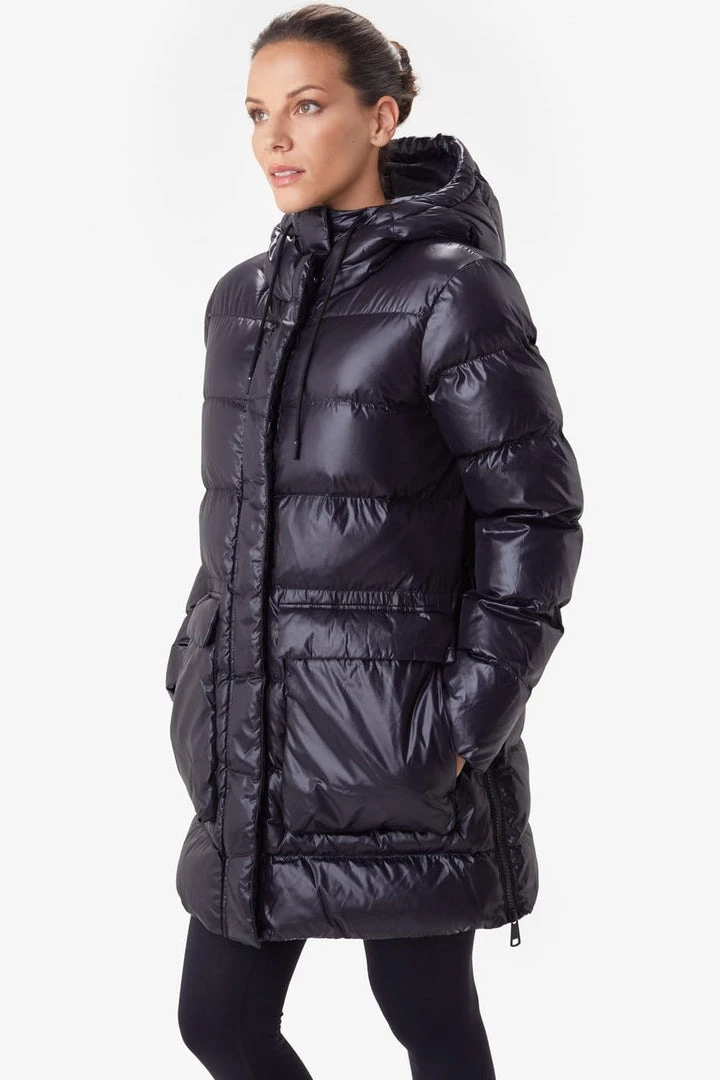 Stay on trend this season with this satin-touch, thigh-length, down coat with side zipper detailing and a large hood to keep the cold out. A new classic – this coat is anything but basic.