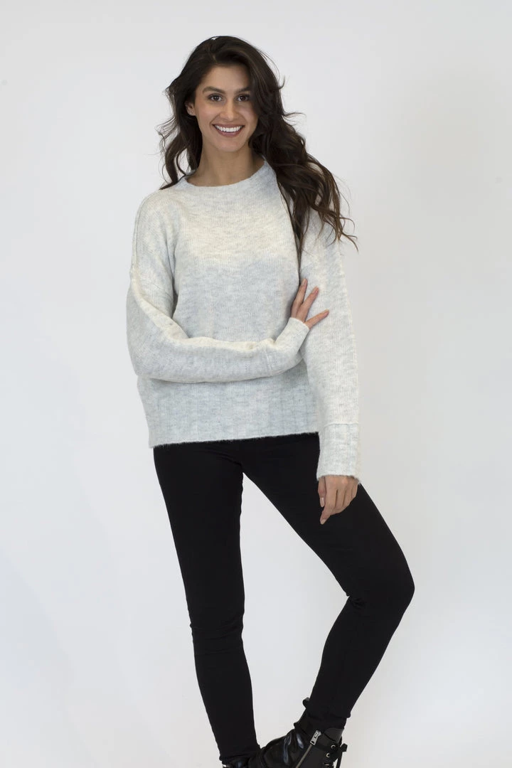 Lyla + Luxe Tanya Round Neck Ribbed Cuff Sweater Women