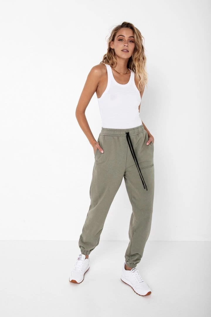 Khaki high waisted tracksuit pant.