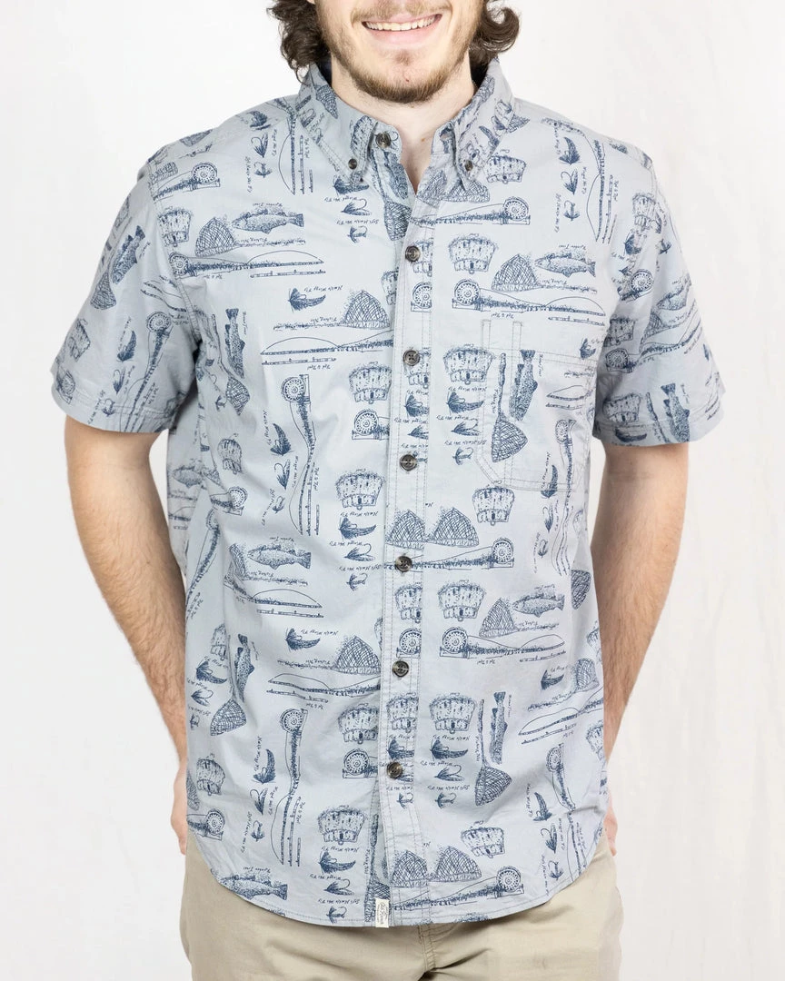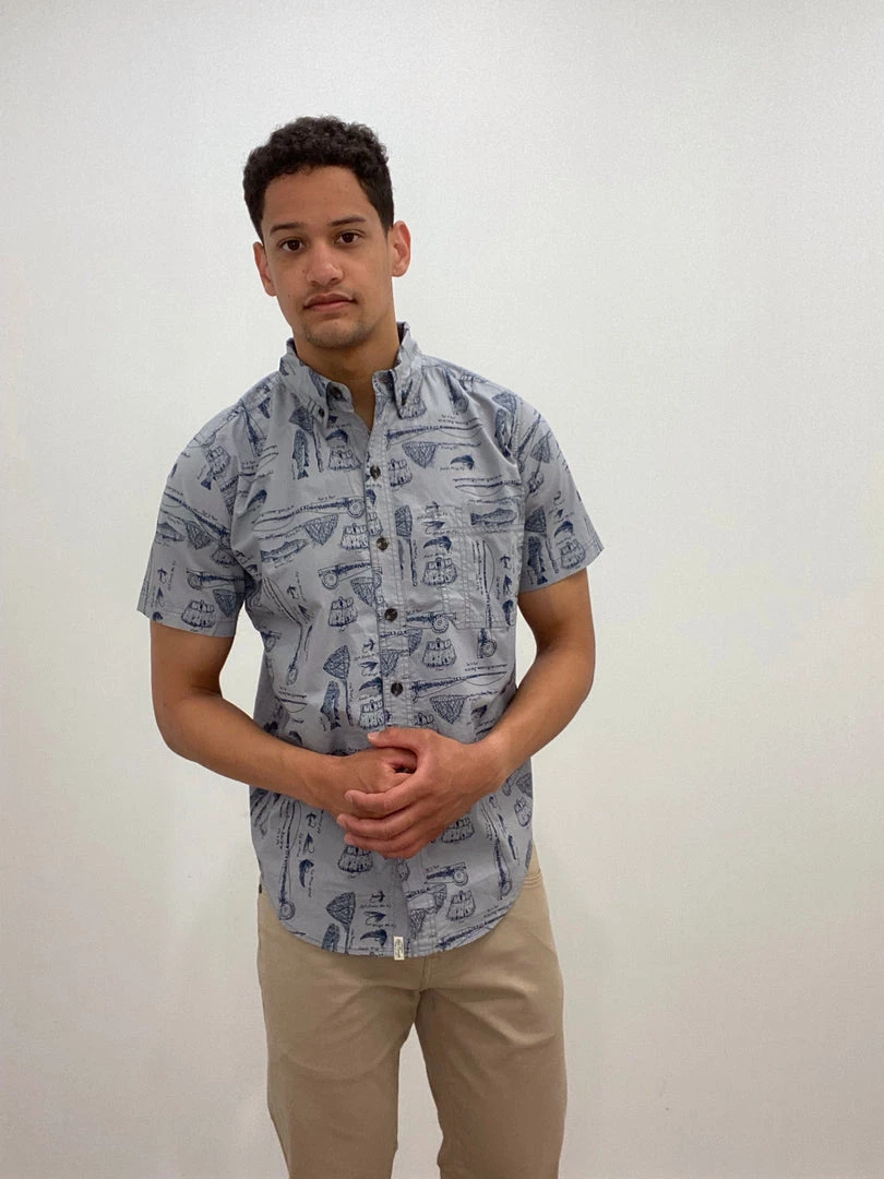 The Powell Short Sleeve top is a handsome choice for serene summer days. This classically styled shirt is woven from 100% cotton cross-dyed fibers, giving the shirt a crisp structured texture and subtle tonal effect while remaining light and breathable. Look sharp with a button-down collar, brown horn buttons, and a reinforced breast pocket with a pen (or sunglass) pocket. Details, such as locker loop with a pleat and chambray facing on the inside collar band, piped with checked plaid poplin piping, polish the top. With a time-honored shape and convenient features, this is the choice for your urban escapades.