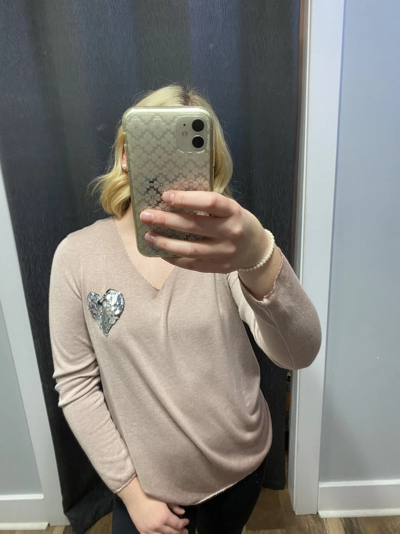 Be the first to review “Pistache Basic V-Neck Sequined Heart Top * Last Chance” Cancel reply