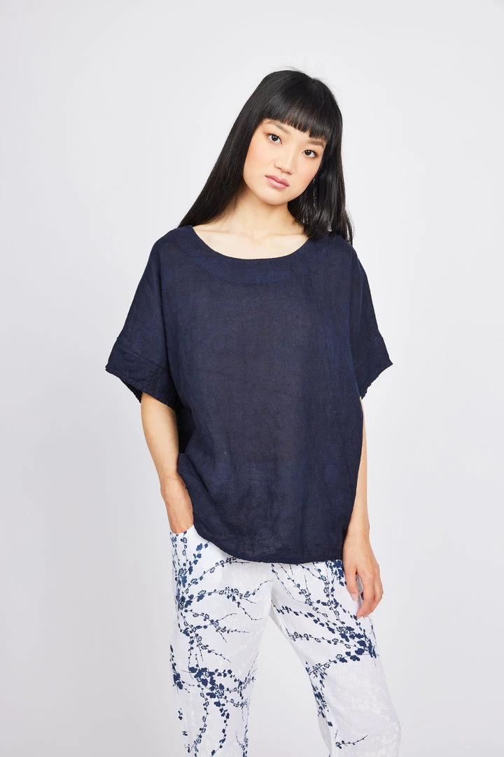 This short-sleeve linen top is perfect for the hot summer days ahead. The loose fit and flowy material will keep you cool and comfortable, while the tie at the neck will add a touch of personality.