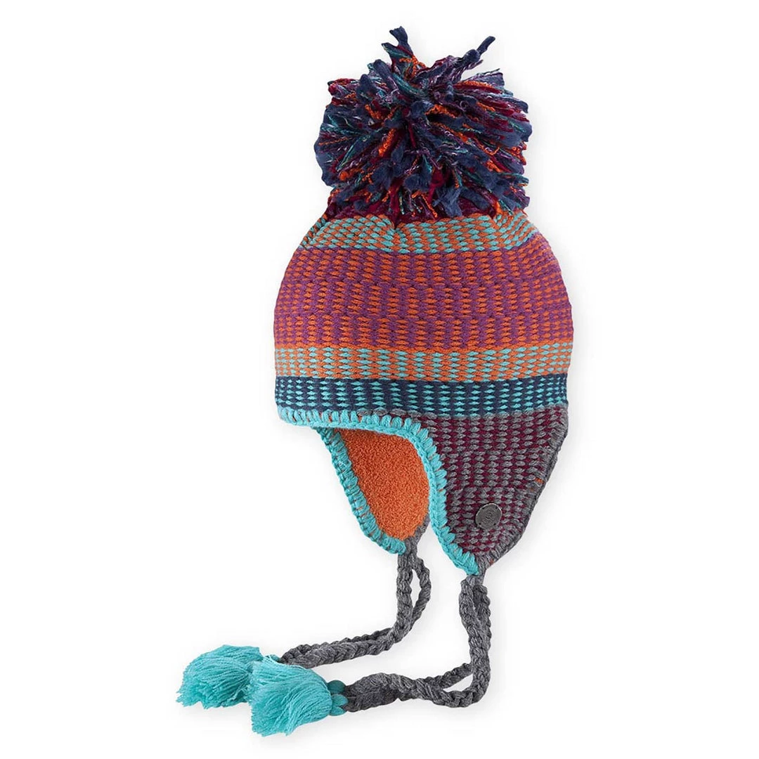 The Frenzy knit hat is over-the-top, in the best possible way. This women’s earflap hat is made with soft acrylic yarn knitted into a colourful array of stripes. The cozy chenille lining extends down to the tasseled earflaps. A prominent pompom tops it all off.