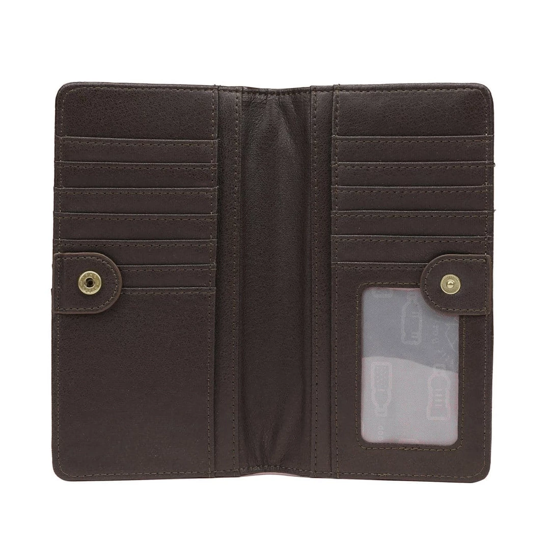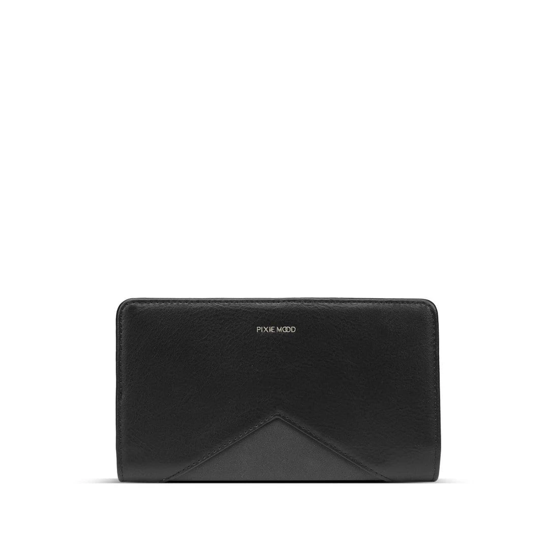 Simple and elegant flat wallet with bold contrasting faux suede details