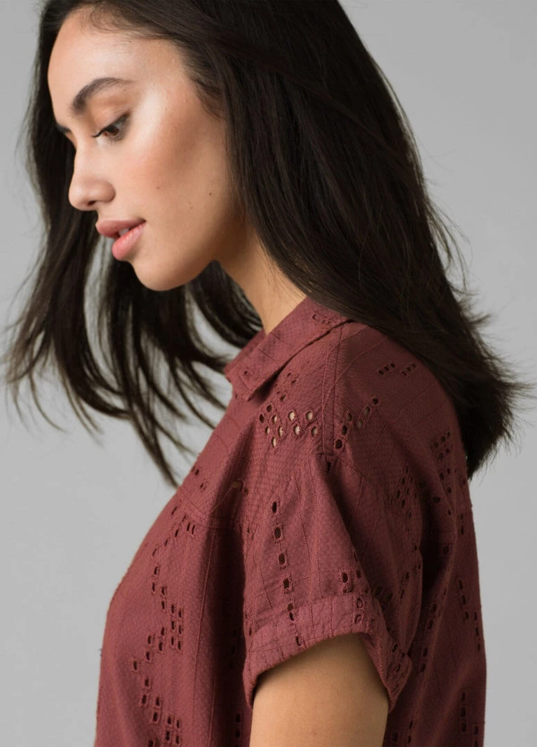- Organic cotton woven dobby with proprietary eyelet embroidery pattern
