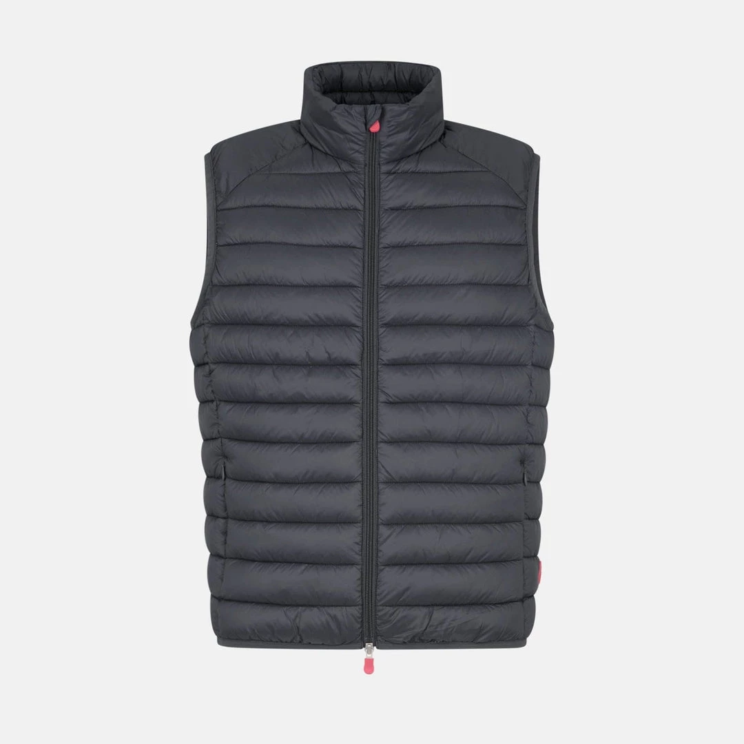 A padded, quilted vest made with soft high density 100% nylon fabric with a standing collar. The vest is lightweight yet resistant, providing protection from water and air, absorbing moisture and drying quickly. Equipped with a central double slider zip and two side pockets enclosed with zips, the jacket is finished with a logo on the left side.