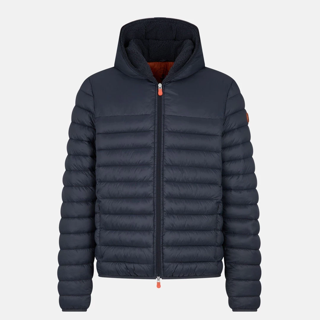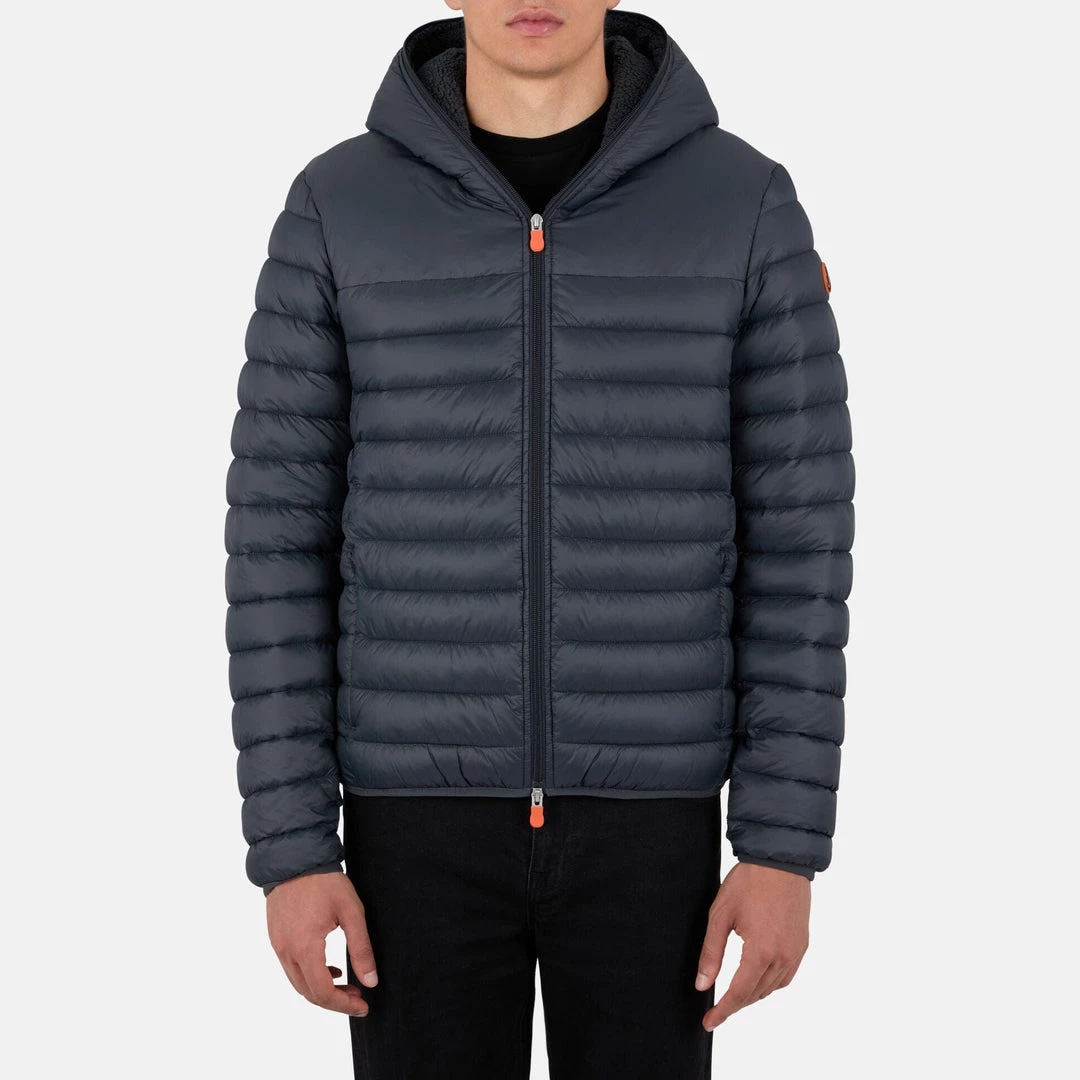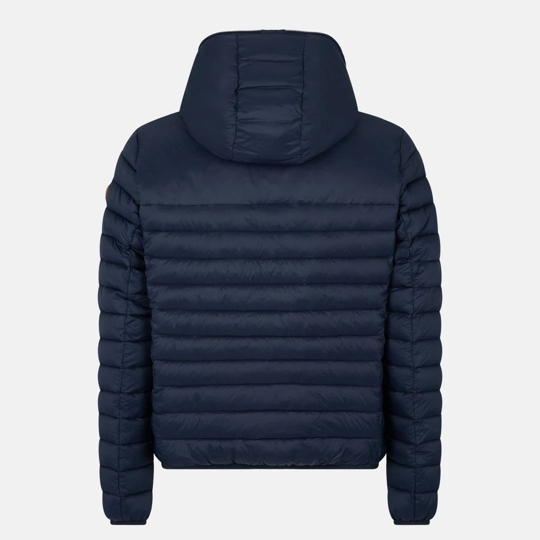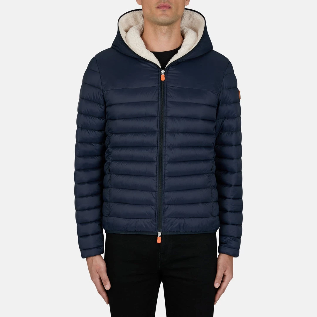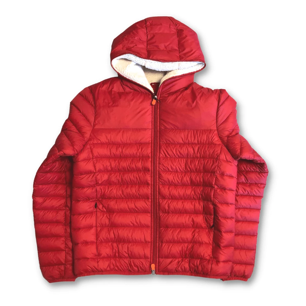 A padded, quilted jacket made with soft high density 100% nylon fabric with a hood and a faux fur lining. The jacket is lightweight yet resistant, providing protection from water and air, absorbing moisture and drying quickly. Equipped with a central double slider zip and two side pockets enclosed with zips, the jacket is finished with a logo on the left sleeve.