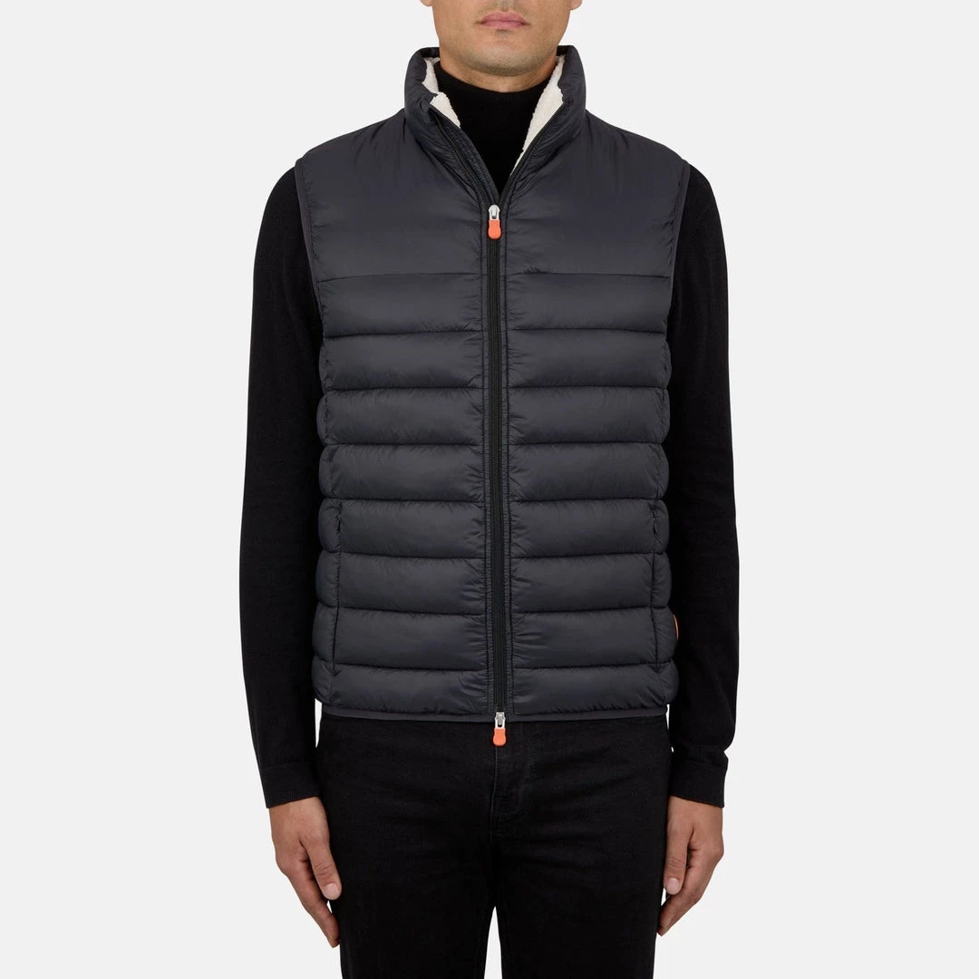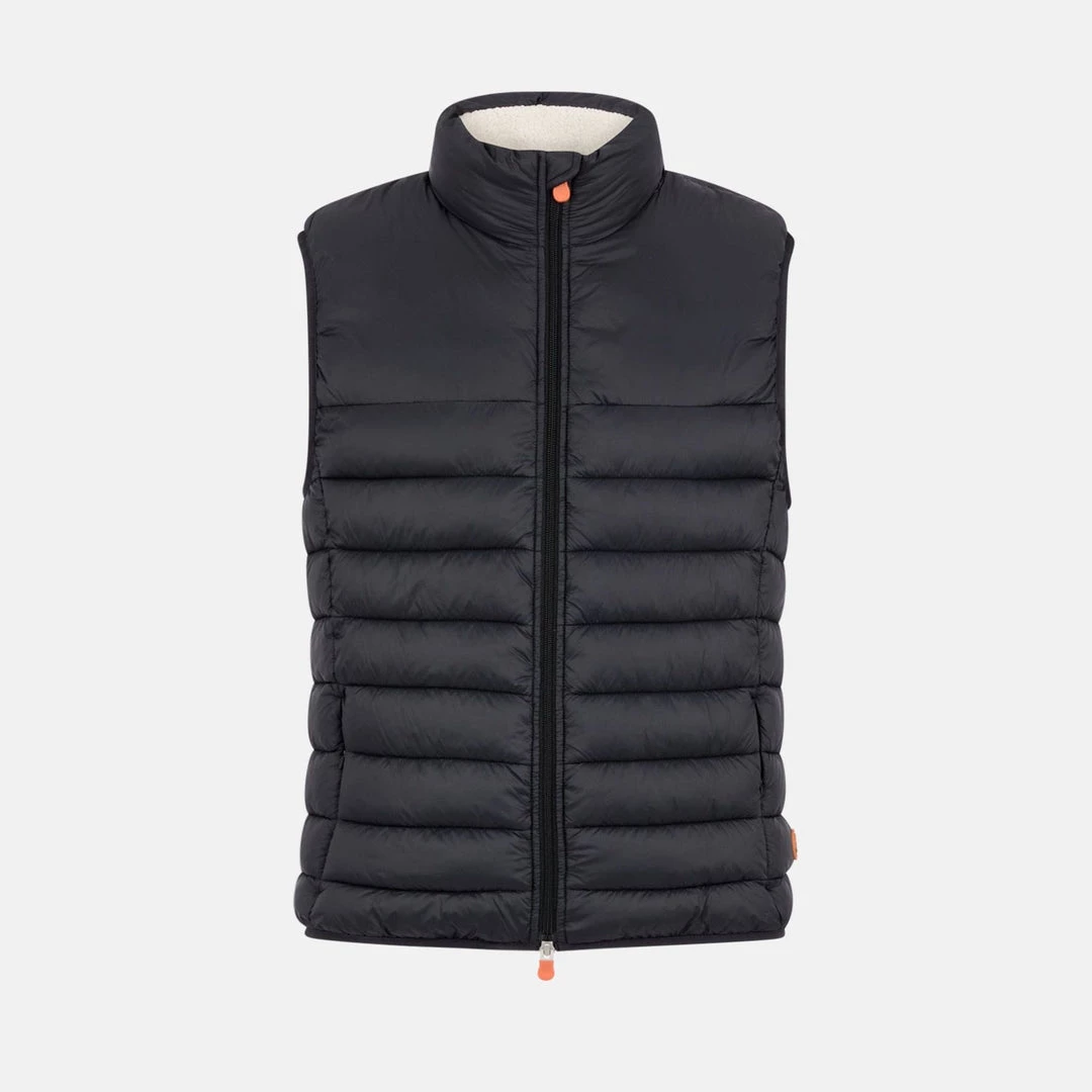 A padded, quilted vest made with soft high density 100% nylon fabric with faux fur lining. The vest is lightweight yet resistant, providing protection from water and air, absorbing moisture and drying quickly. Equipped with a central double slider zip and two side pockets enclosed with zips, the jacket is finished with a logo on the left side.