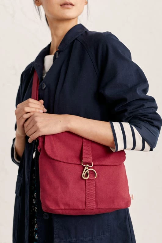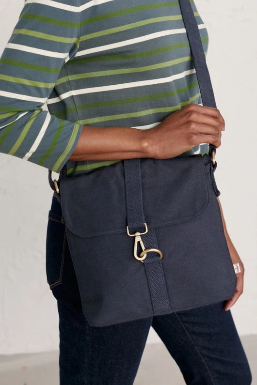 Our new cross-body cotton canvas bag combines function and beauty. It is made from hardwearing canvas in a rainbow of Cornish colours to brighten even the greyest days. The ideal size for all your daily essentials, we’ve given it a flap top closure that secures with a silver or brass coloured clip for a sporty, modern feel. The webbed strap is adjustable, so you can wear it across your body or over your shoulder. Finished with stitch detailing and internal slip pocket.