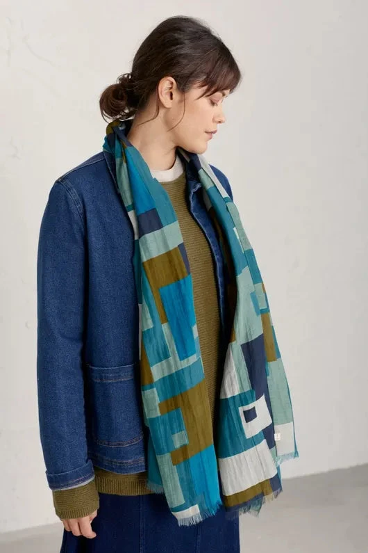 To match this season’s line, a lightweight summer scarf in a gorgeous organic cotton and silk blend with abstract prints made by our in-house artists.