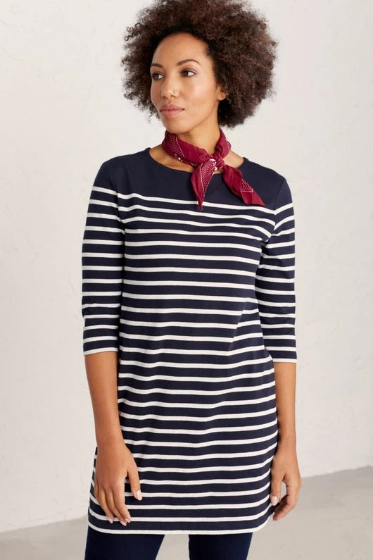 Our Sailor Tunic is comprised of a luxuriously soft organic cotton that feels wonderful against the skin. This nautical tunic is an instant favourite, with a classic boat neck and 3/4-length sleeves that layer wonderfully over leggings.