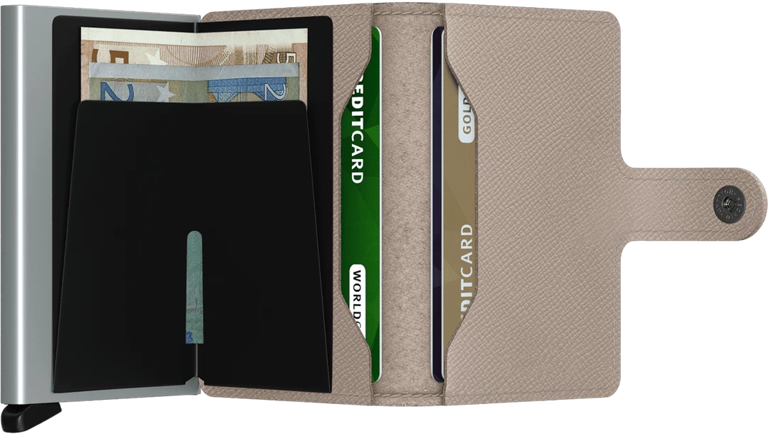 The patented mechanism allows you to slide out your cards with one simple motion, ready for immediate use. The aluminium protects from bending, breaking and unwanted wireless communication.